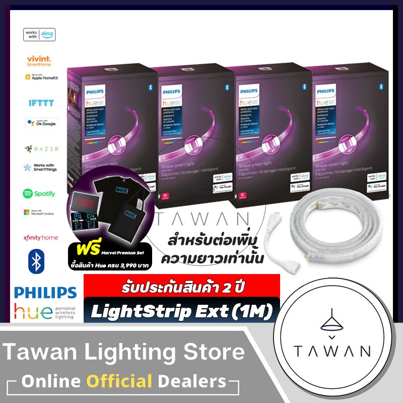 F2273 [Happy Set] Philips Hue LightStrip Extension ชุดต่อไฟเส้นเปลี่ยนสีอัจฉริยะ ความยาว 1เมตร 4 ชุด 10วัตต์ เปลี่ยนสีได้ 16 ล้านสี