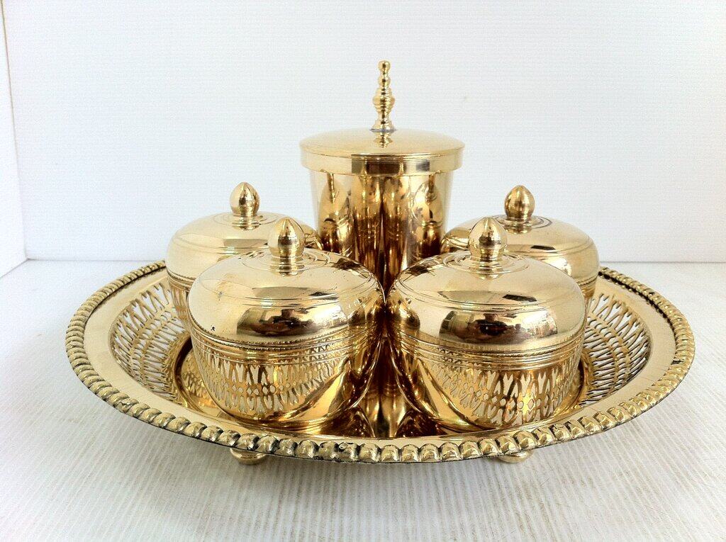 F2280 ชุดทองเหลืองถาดซี่ 10 นิ้ว ตลับเรียบ 3 นิ้วพร้อมแก้วน้ำ 9cm ฝาปิด