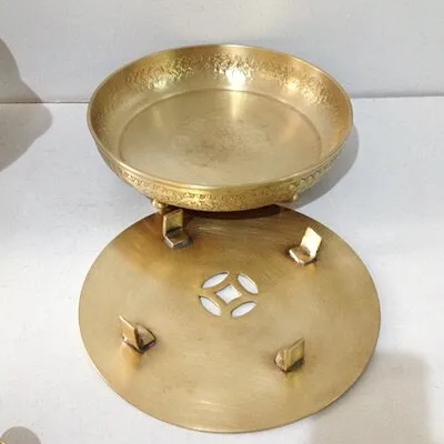 ถาดทองเหลืองสองชั้น 8 นิ้วครึ่ง ตอกลาย