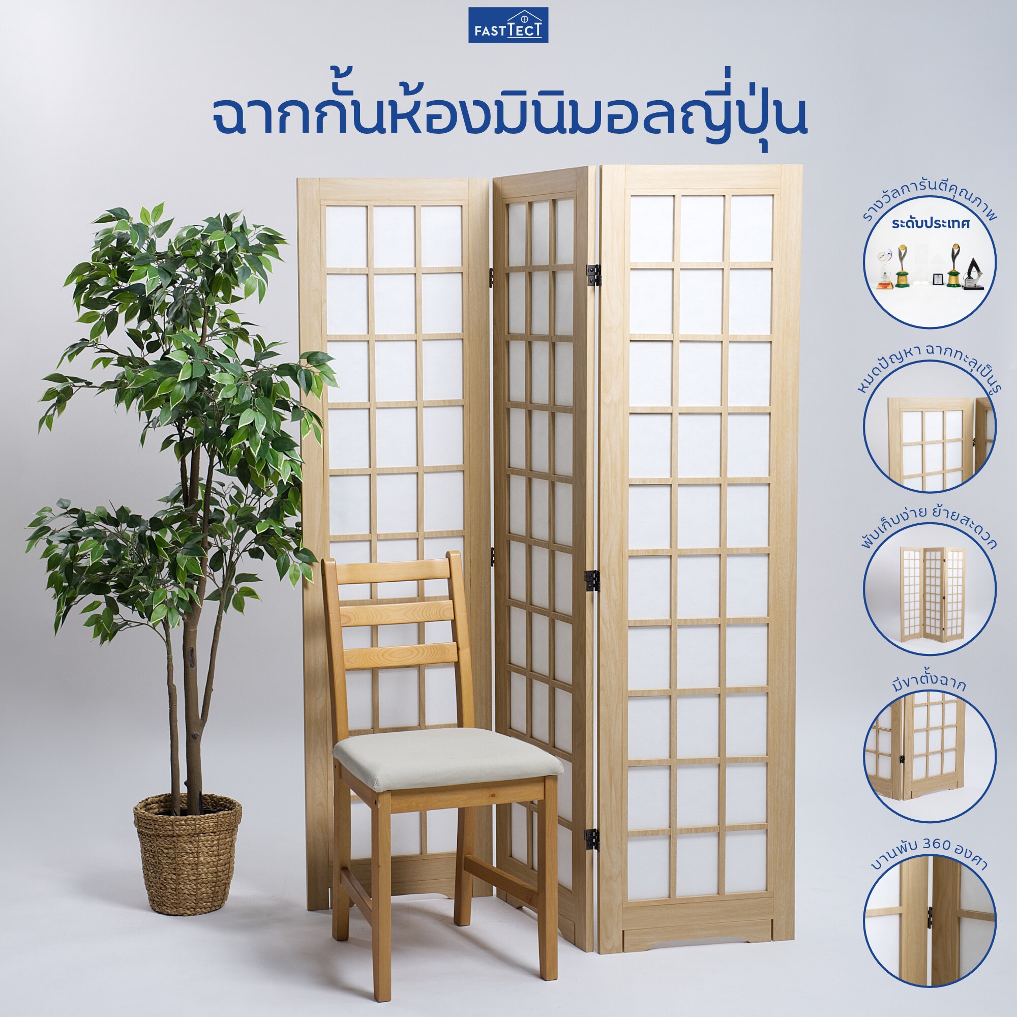 F2283 FASTTECT ฉากกั้นห้องมินิมอลญี่ปุ่น – แบ่งสัดส่วน กั้นสายตา พับเก็บได้ ประหยัดพื้นที่