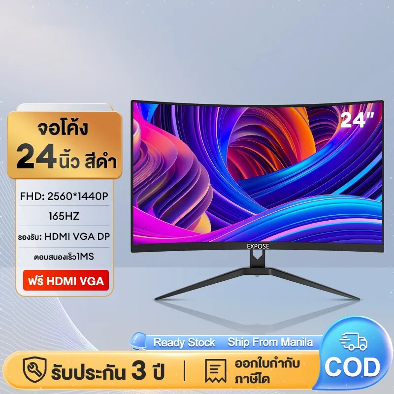 จอคอมพิวเตอร์ 24นิ้ว 4K monitor หน้าจอโค้ง 165HZ จอคอม จอมอนิเตอร์ 4K Ultra HD LED IPS 1MS HDMI/DP/VGA รับประกัน 3 ปี