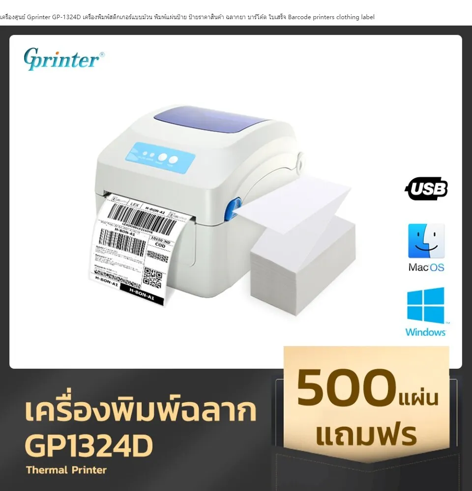 Global version Gprinter GP 1324D เครื่องพิมพ์สติกเกอร์แบบม้วน พิมพ์แผ่นป้าย ป้ายราคาสินค้า ฉลากยา บาร์โค้ด ใบเสร็จ Barcode printers clothing label