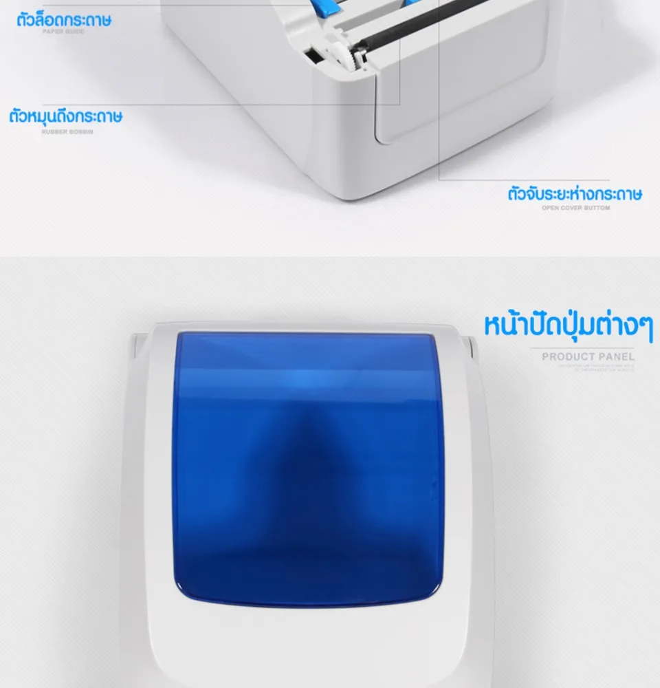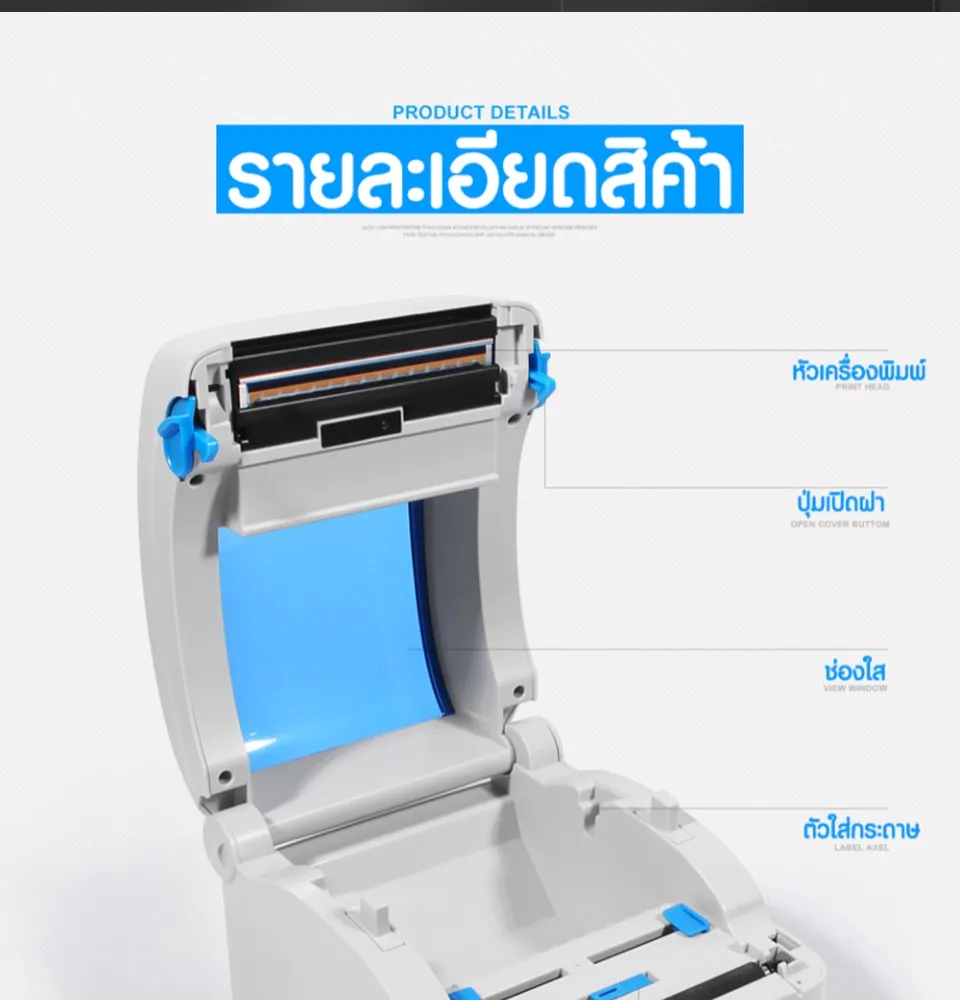– รองรับการพิมพ์กระดาษสติ๊กเกอร์ความร้อนทั้งแบบม้วนและพับ ( แบบพับวางนอกเครื่อง)