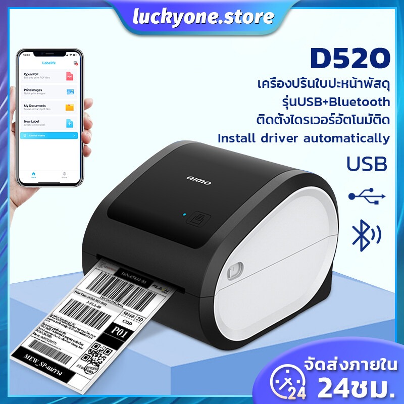 เครื่องปริ้นใบปะหน้าพัสดุ เครื่องปริ้น sticker USB+Bluetooth Thermal Printer เครื่องพิมพ์ฉลากควมร้อน เครื่องปริ้นบลูทูธ เครื่องพิมพ์บาร์โค้ด เครื่องปริ้นลาเบล เครื่องปริ้น order
