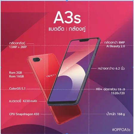 • ระบบปฏิบัติการ : ColorOS 5.1 บนพื้นฐาน Android 8.1