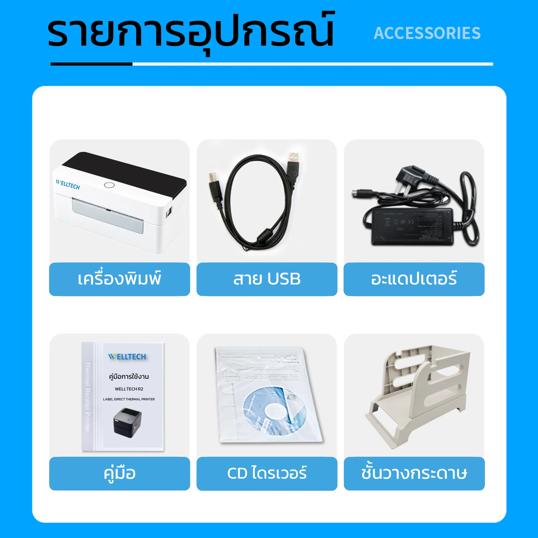 เครื่องพิมพ์ใบปะหน้าพัสดุ ฉลากสินค้า ฉลากยา บาร์โค้ด WELLTECH รุ่น R2 Direct Thermal Label Printer รุ่นใหม่ ไม่เสียกระดาษแผ่นแรก