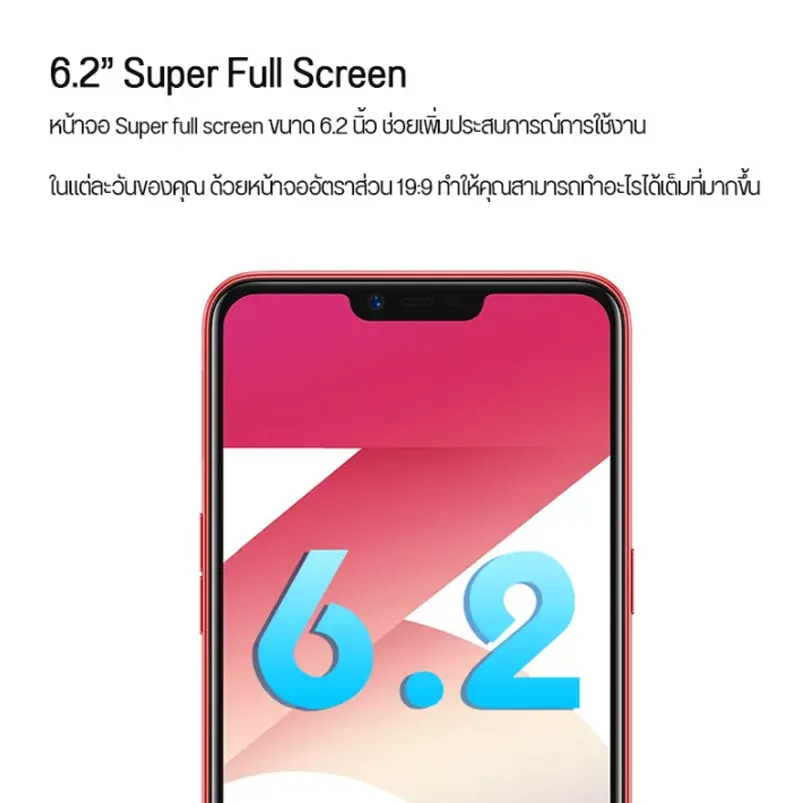 จอแสดงผล IPS-LCD 24-bit (16 ล้านสี) – หน้าจอไร้ขอบ (Fullview Display) – กว้าง 6.2 นิ้ว (แนวทะแยง) – ความละเอียด 1520 x 720 พิกเซล