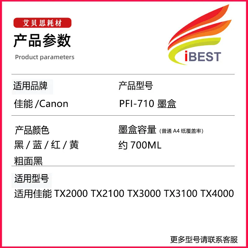 • สี: PFI-710MBK ตลับหมึกสีย้อมดำหยาบ [700มล.]