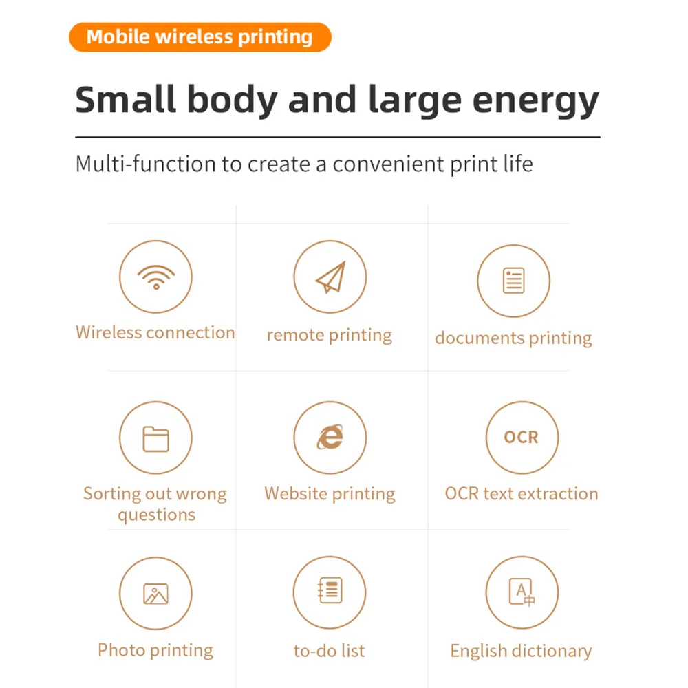 - เครื่องพิมพ์ All in One: เหมาะสำหรับพิมพ์สิ่งที่คุณต้องการ ไฟล์ PDF กระดาษทดสอบ หน้าเว็บ สัญญา ภาพถ่าย รูปภาพ ฯลฯ แบบไร้สายสำหรับพิมพ์กระดาษจำนวนมากระหว่างการเดินทางเพื่อธุรกิจ ตัวช่วยที่ยอดเยี่ยมสำหรับการเรียนและงานในสำนักงาน การพิมพ์แบบไร้หมึก ไม่มีริบบิ้น