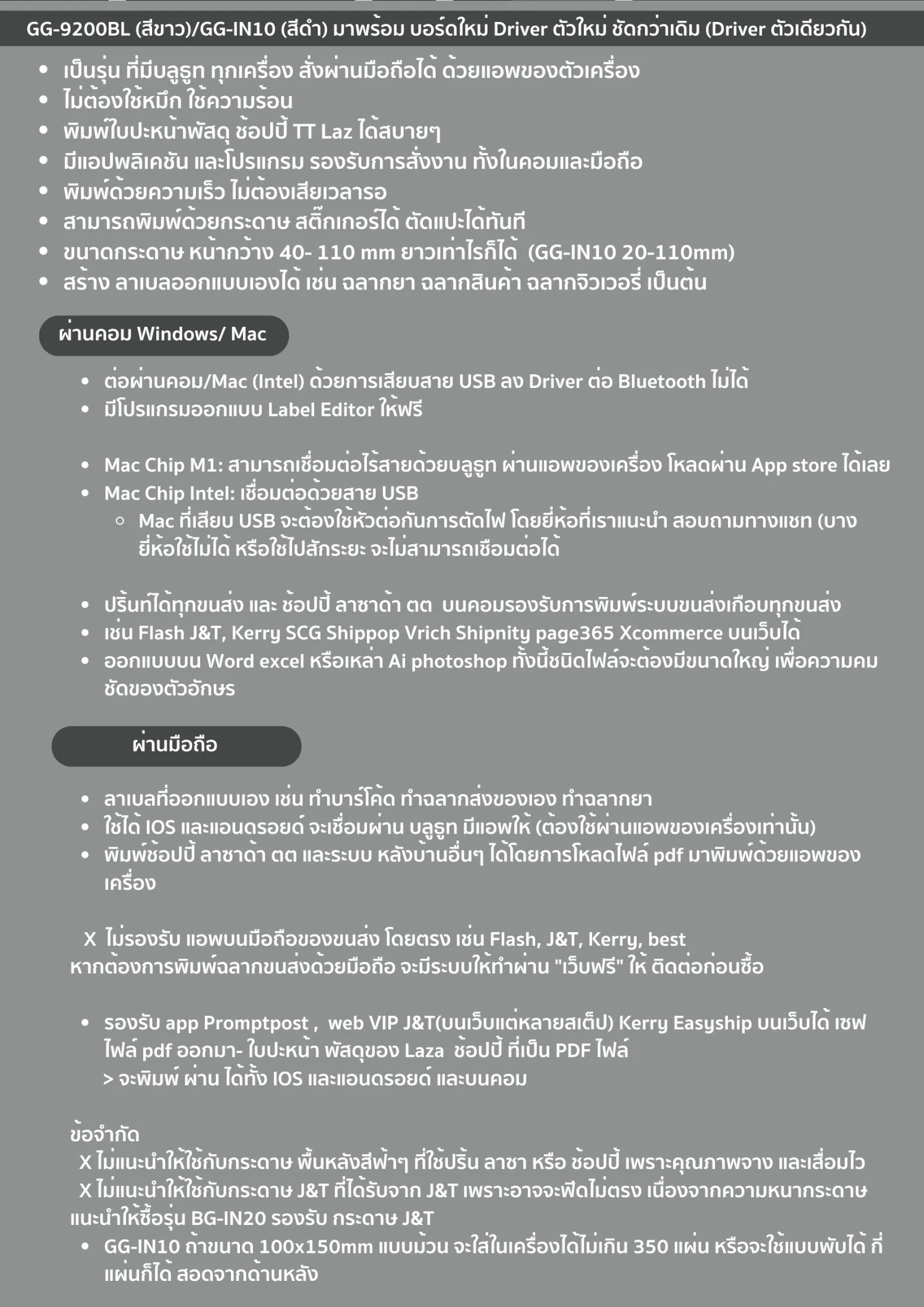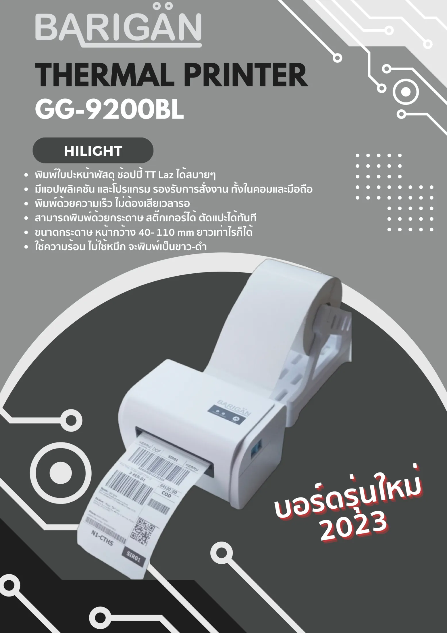 เครื่องพิมพ์ฉลาก BARIGAN รุ่น GG-9200BL BT USB Thermal printer พิมพ์ใบปะหน้าพัสดุไม่ใช้หมึก