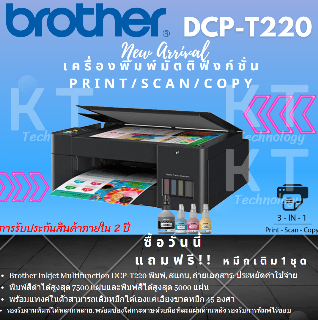 F2380 เครื่องปริ้น Brother Inkjet Printer Multifunction DCP-T220 (New) ประกัน2ปีที่ซื้อทันทีแถมฟรี!!!หมึกเติม1ชุด