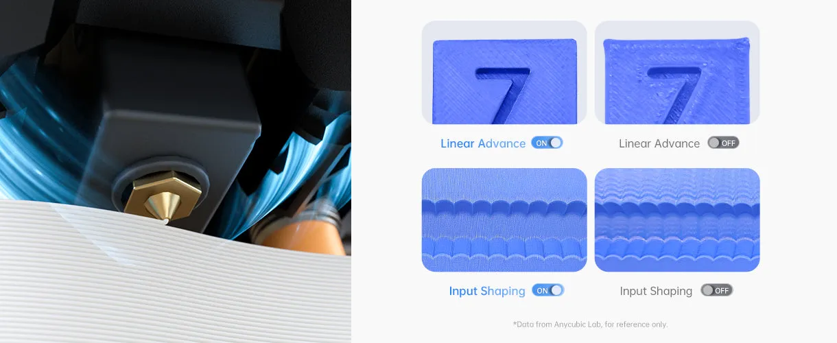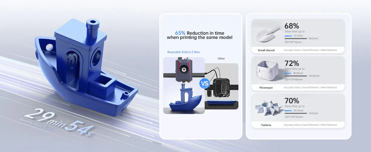[1] Compared to products an average printing speed of 50mm/s, data from Anycubic Lab, results are for reference only