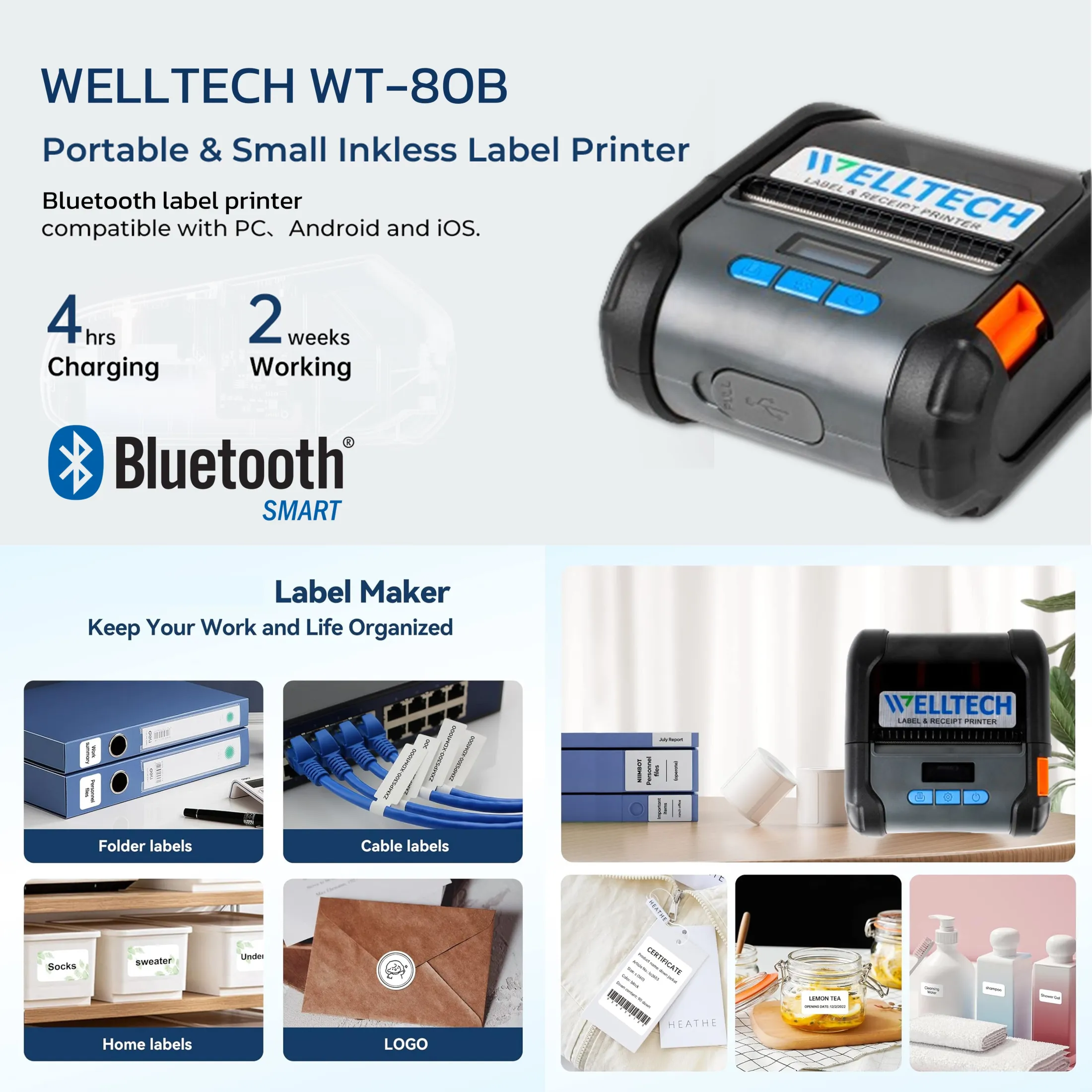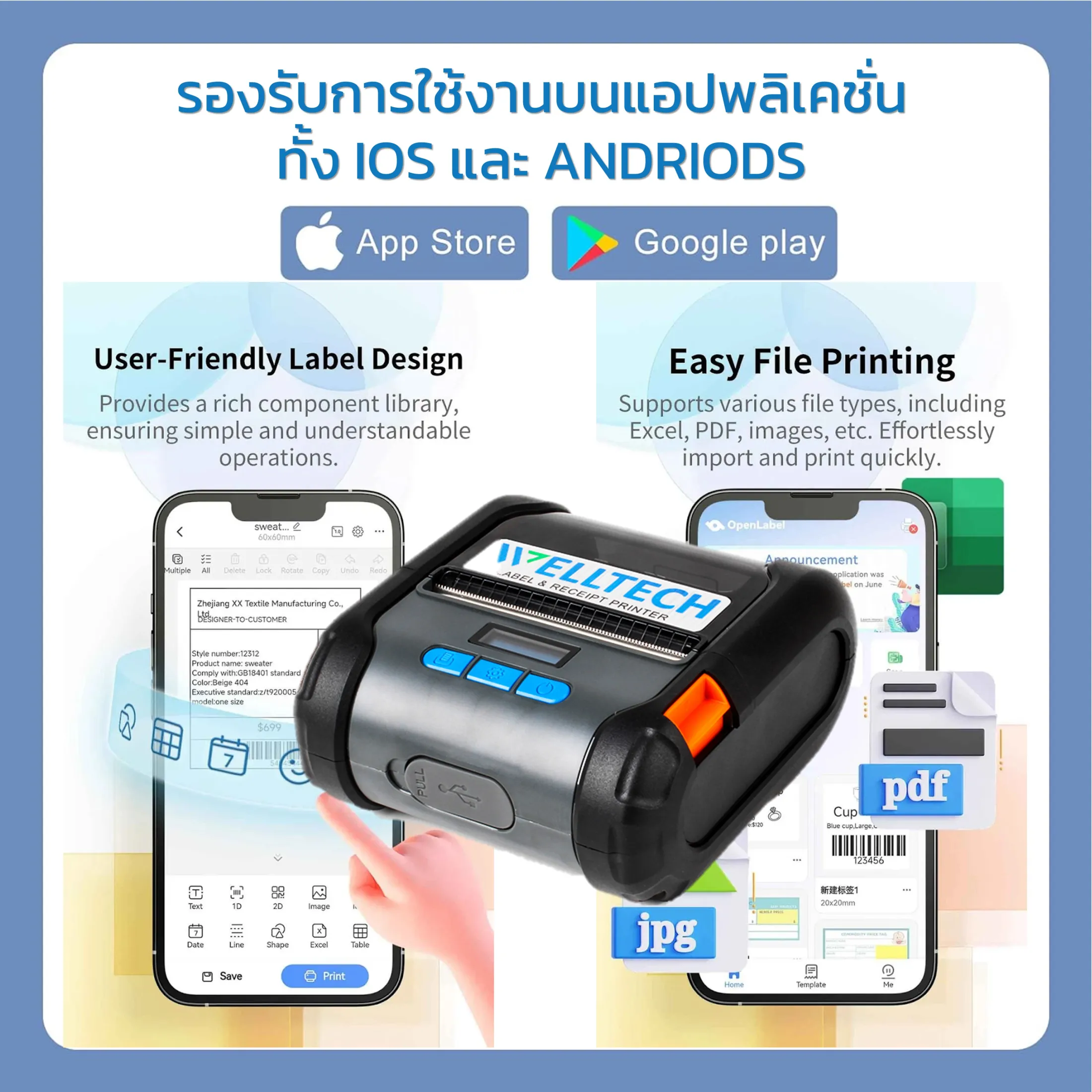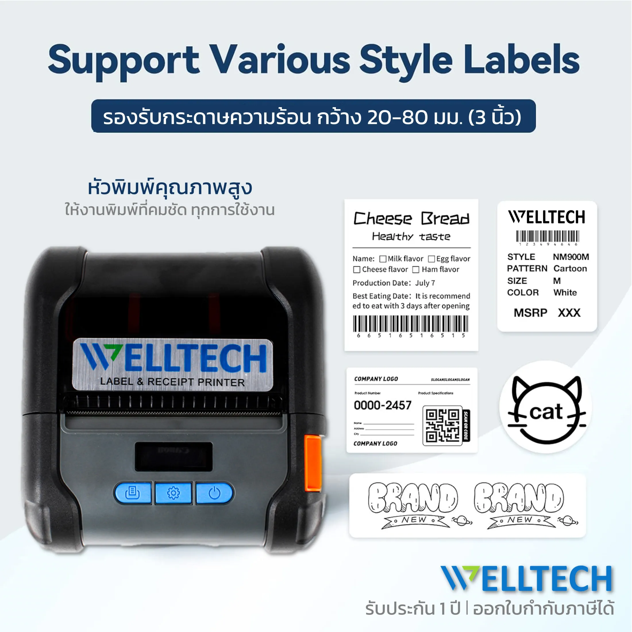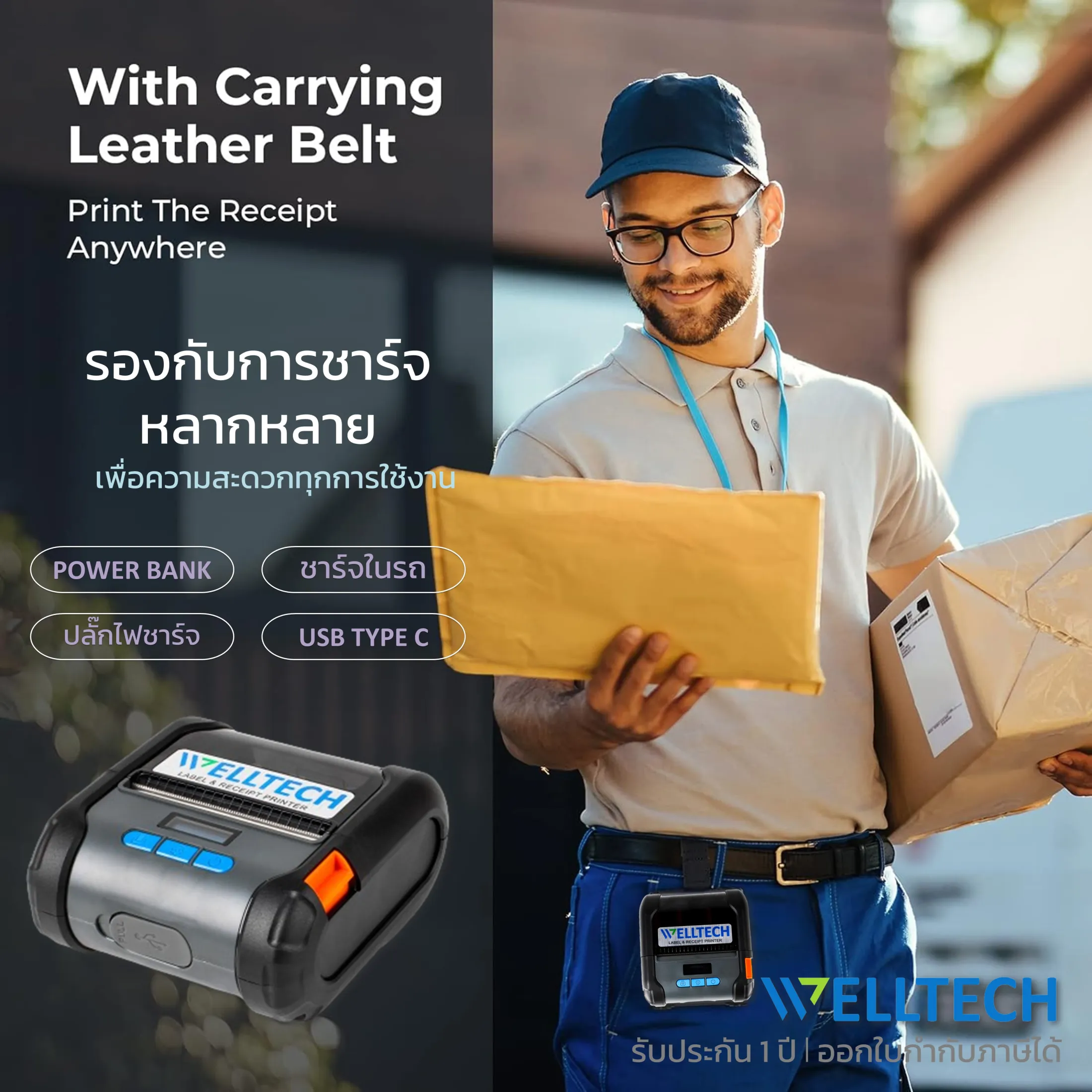 - • WELLTECH รุ่น WT-80B Portable Direct Thermal Printer 2 in 1