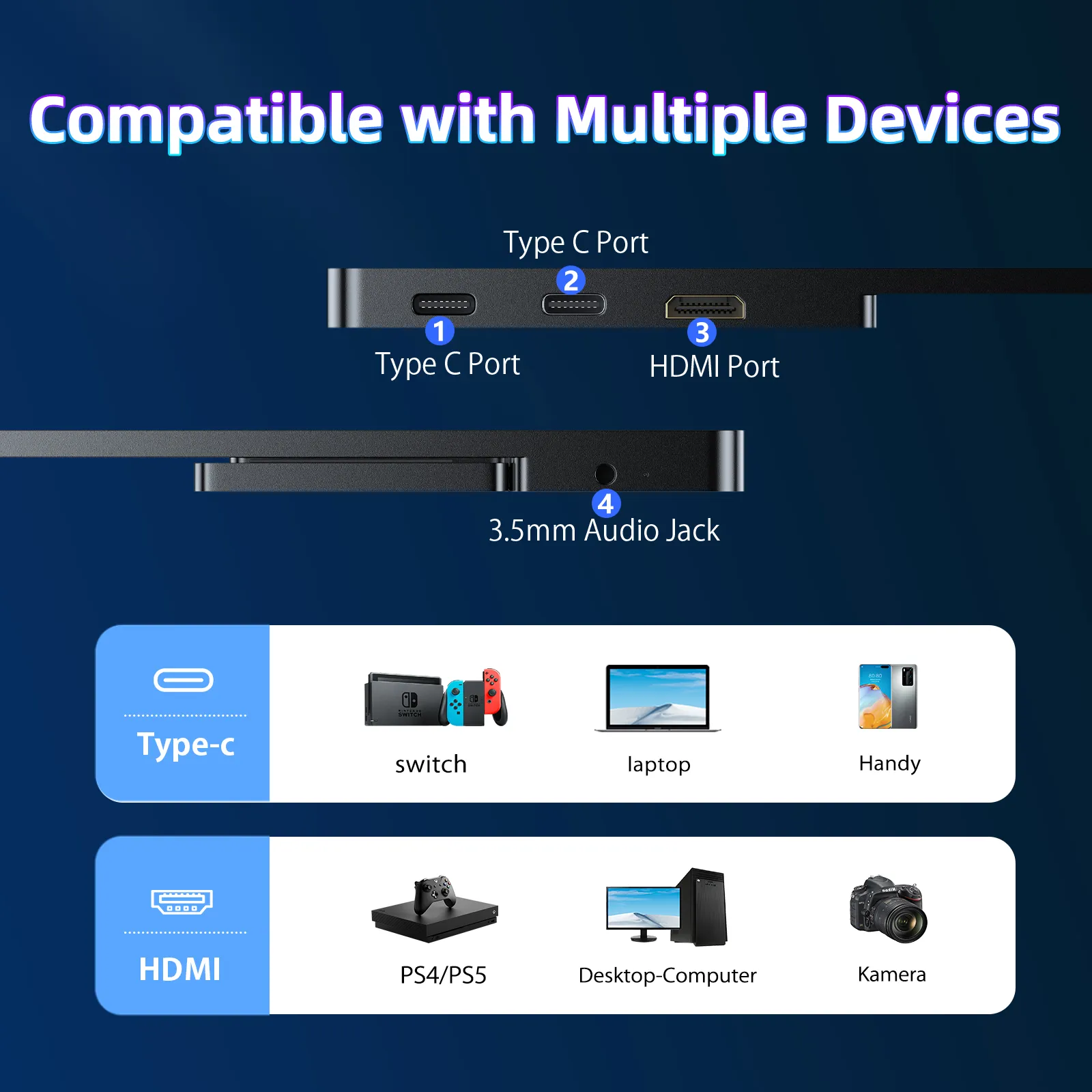 [Wide Compatible] 13.3-inch MacBook mini monitor provides 2 Full Feature Type-C ports and a Mini-HDMI port, easy access to your favorite devices with 1 cable solution, compatible with most laptops, smartphones, etc. An excellent choice for dual monitor or third screen!