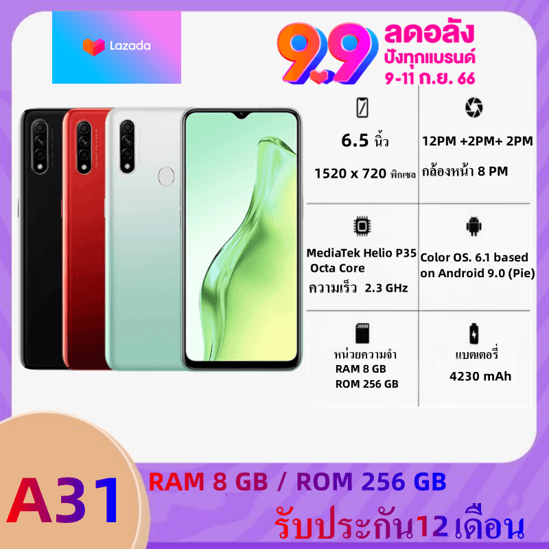F240 พร้อมส่ง จัดส่งฟรี มือถือoppo A31 แรม 8GB รอม 256GB หน้าจอHd 6.5 นิ้ว แอนดอย 9.0 แบตเตอรี่ 4230 mAh อุปกรณ์ครบชุด ประกันร้าน 12 เดือน