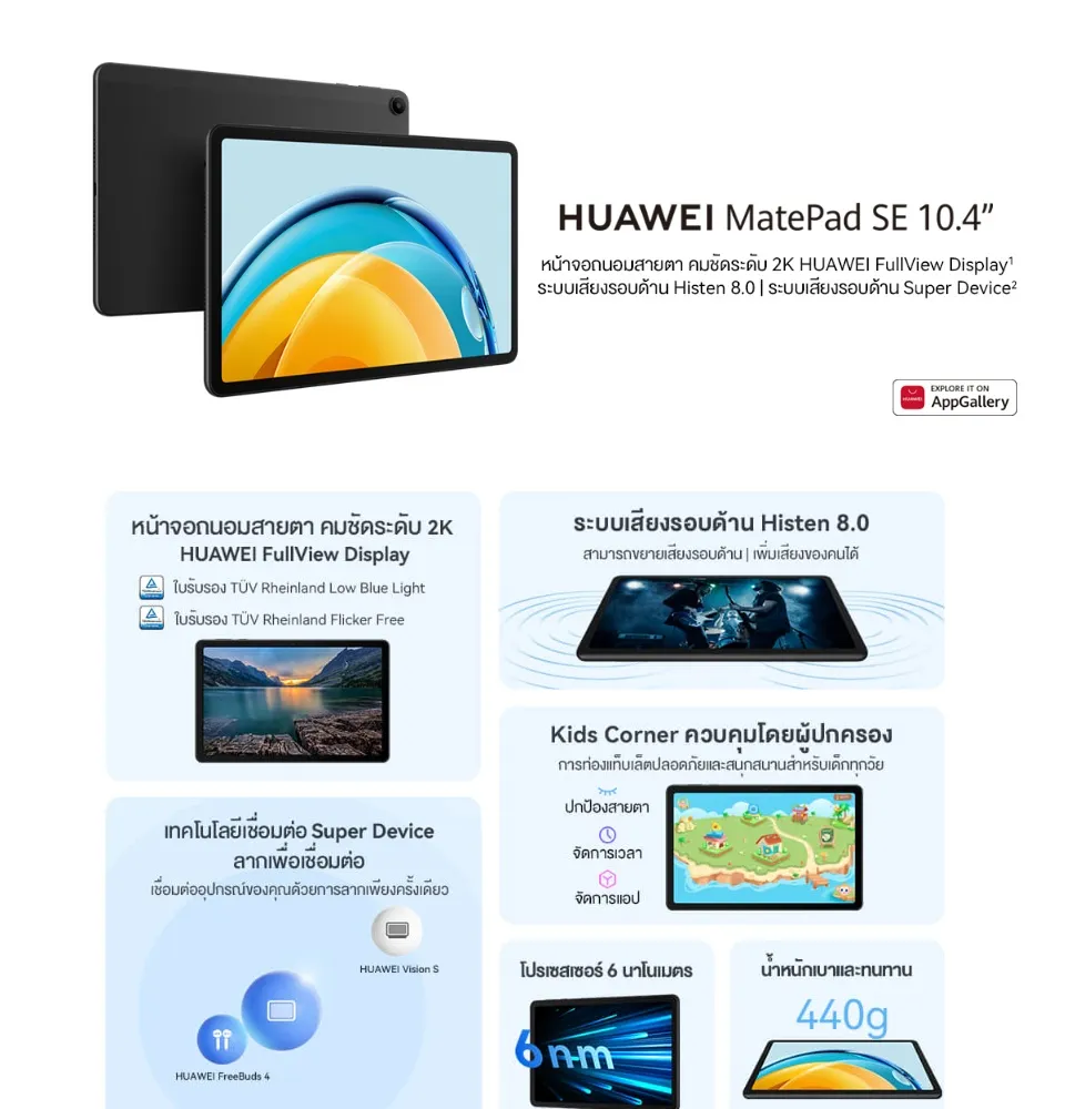 F241 HUAWEI MatePad SE WIFI 4+64GB แท็บเล็ต หน้าจอถนอมสายตา คมชัดระดับ 2K ระบบเสียงรอบด้าน Histen 8.0 ร้านค้าอย่างเป็นทางการ