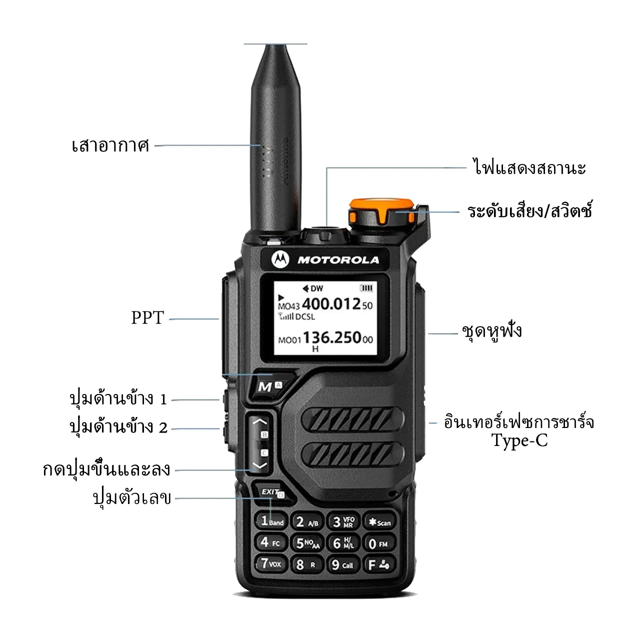 วิทยุสื่อสาร motorola X8 10W การรับเซ็กเมนต์ AM/FM 200 ช่อง 5500mAh ระยะการสื่อสาร 1-10KM Two-Way Radio วิทยุสื่อสารดำ