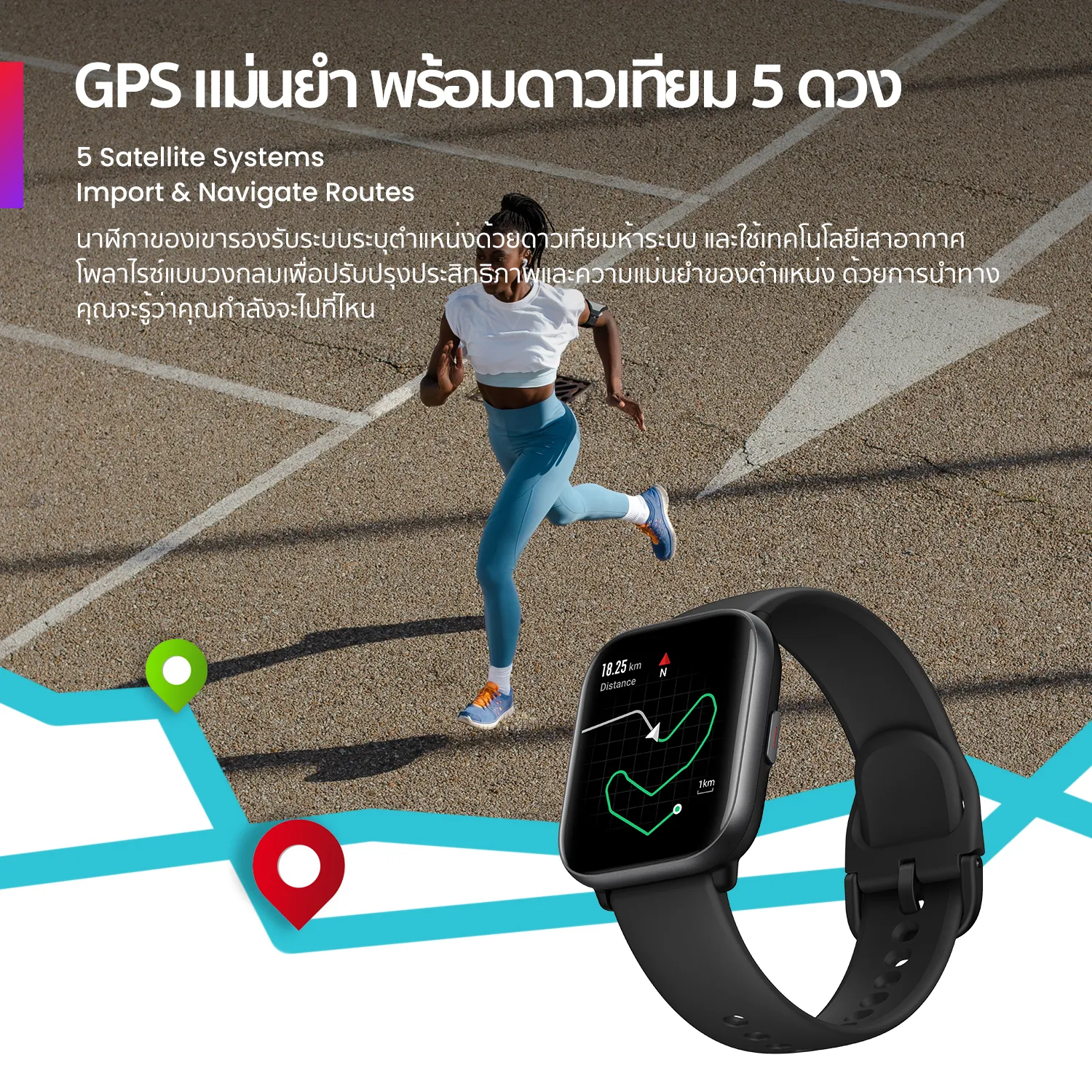 GPS พร้อมดาวเทียม 5 ดวง – นาฬิกาของเขารองรับระบบระบุตำแหน่งด้วยดาวเทียมห้าระบบ และใช้เทคโนโลยีเสาอากาศโพลาไรซ์แบบวงกลมเพื่อปรับปรุงประสิทธิภาพและความแม่นยำของตำแหน่ง ด้วยการนำทางเส้นทาง คุณจะรู้ว่าคุณกำลังจะไปที่ไหน
