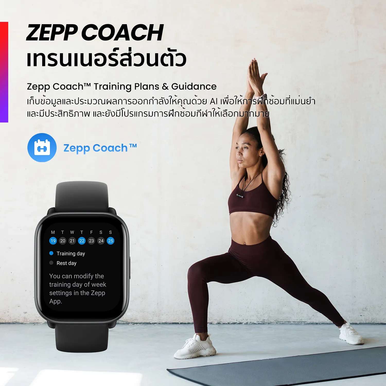 ZEPP COACH™ – เก็บข้อมูลและประมวณผลการออกกำลังให้คุณด้วย AI เพื่อให้การฝึกซ้อมที่แม่นยำและมีประสิทธิภาพ และยังมีโปรแกรมการฝึกซ้อมกีฬาให้เลือกมากมาย