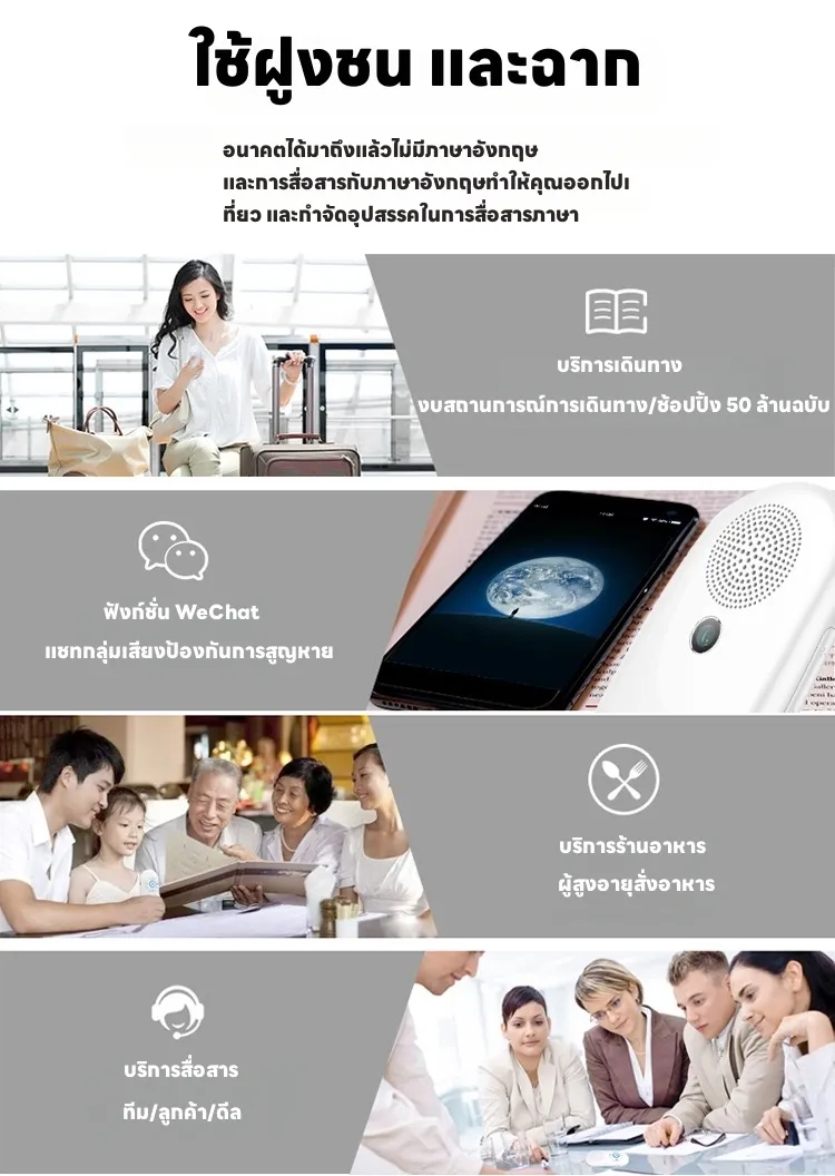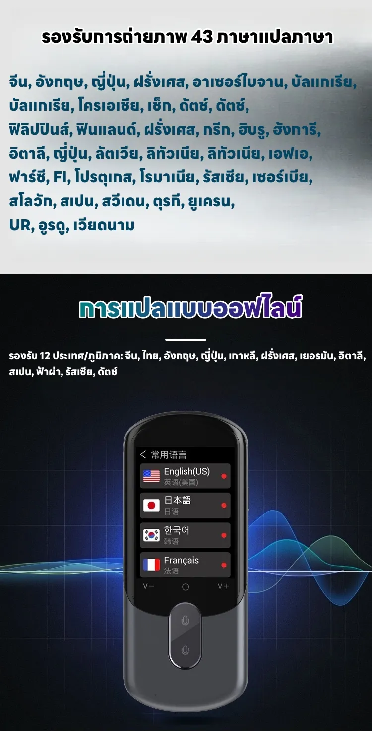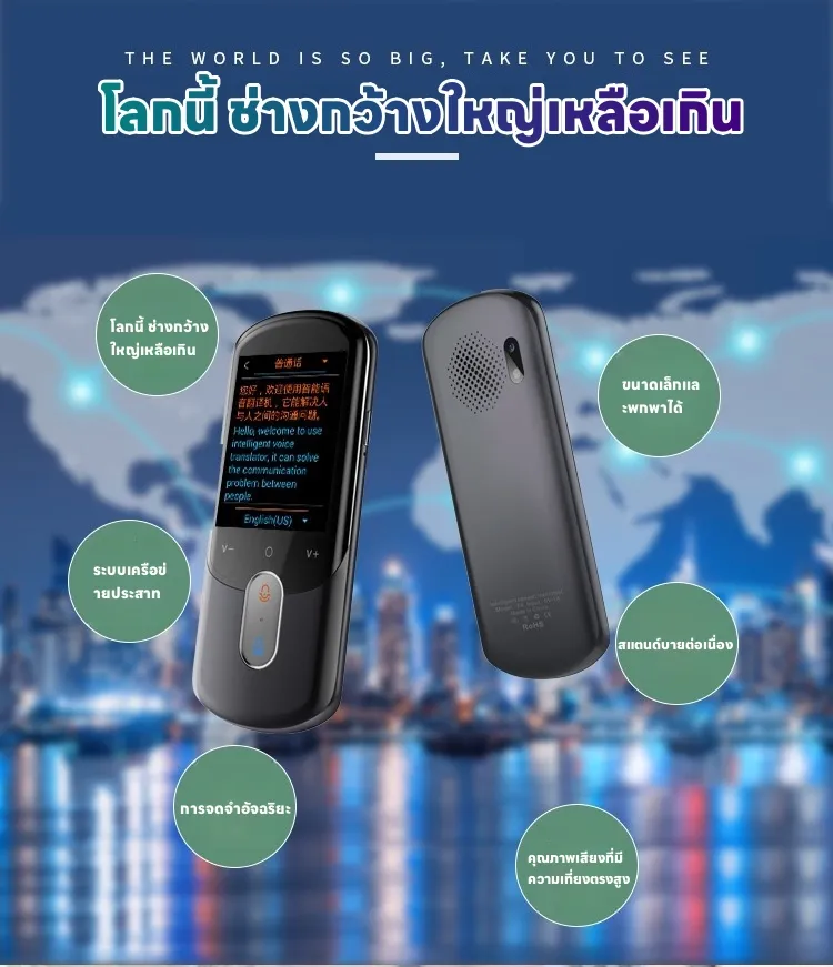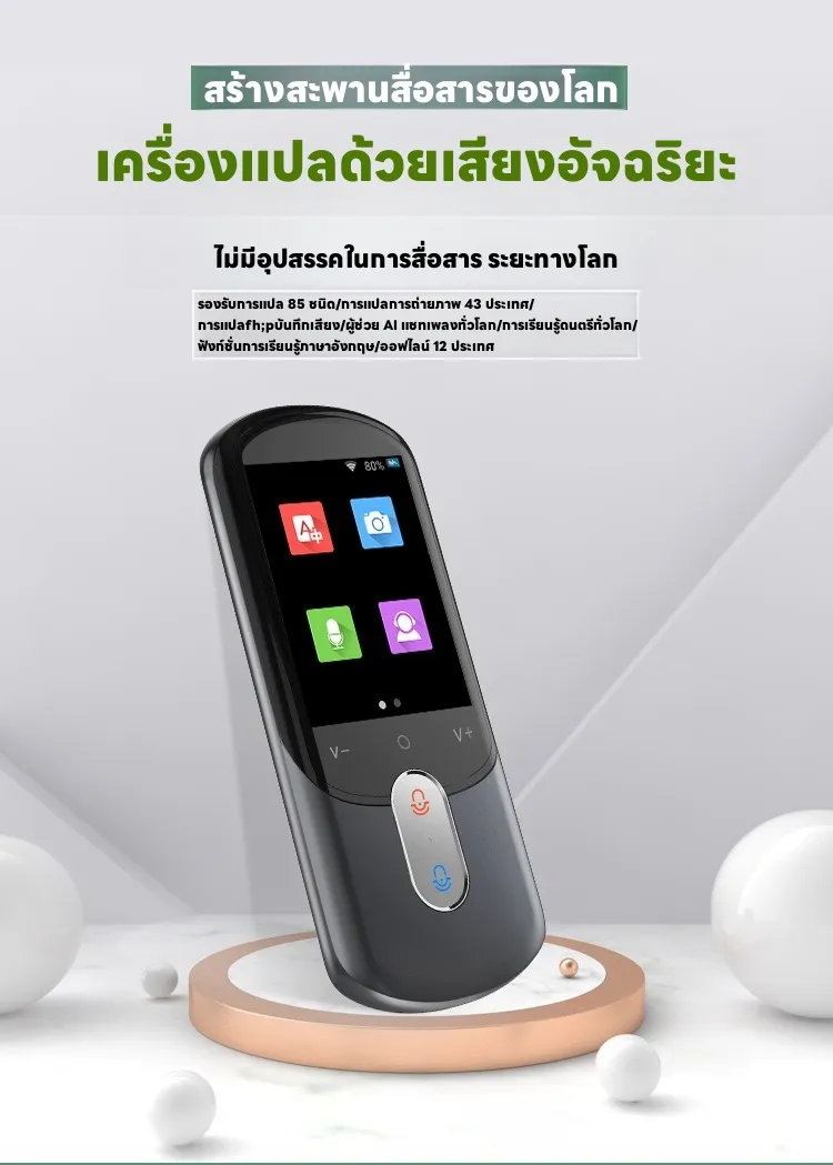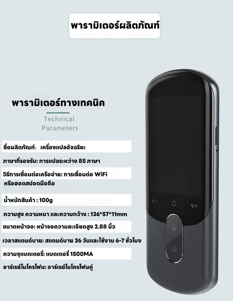 เครื่องแปลภาษา แป แปลภาษา 113 ประเทศ แปลทันทีเป็นภาษาอื่นๆ 88 ภาษา, พม่า, ไทย, แปลข้ามชาติ ระดับเสียงประกอบที่แข็งแกร่งพิเศษ ไมโครโฟนที่ได้ดูดซับเสียงและลดเสียงรบกวน