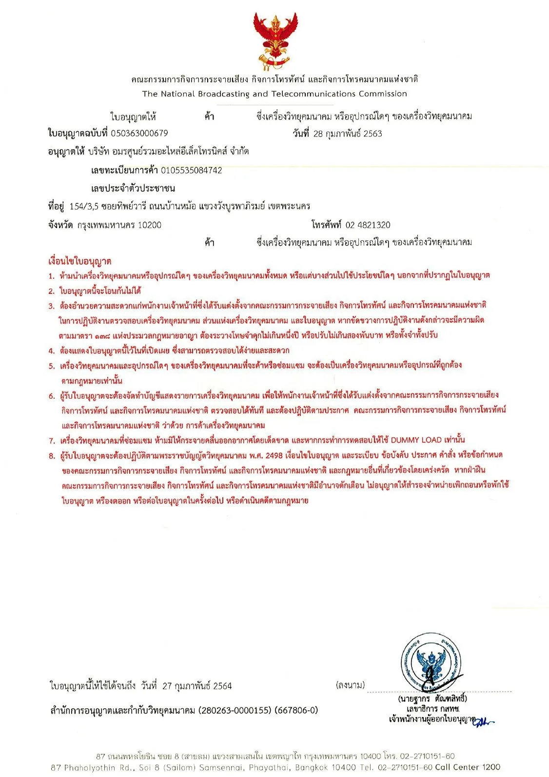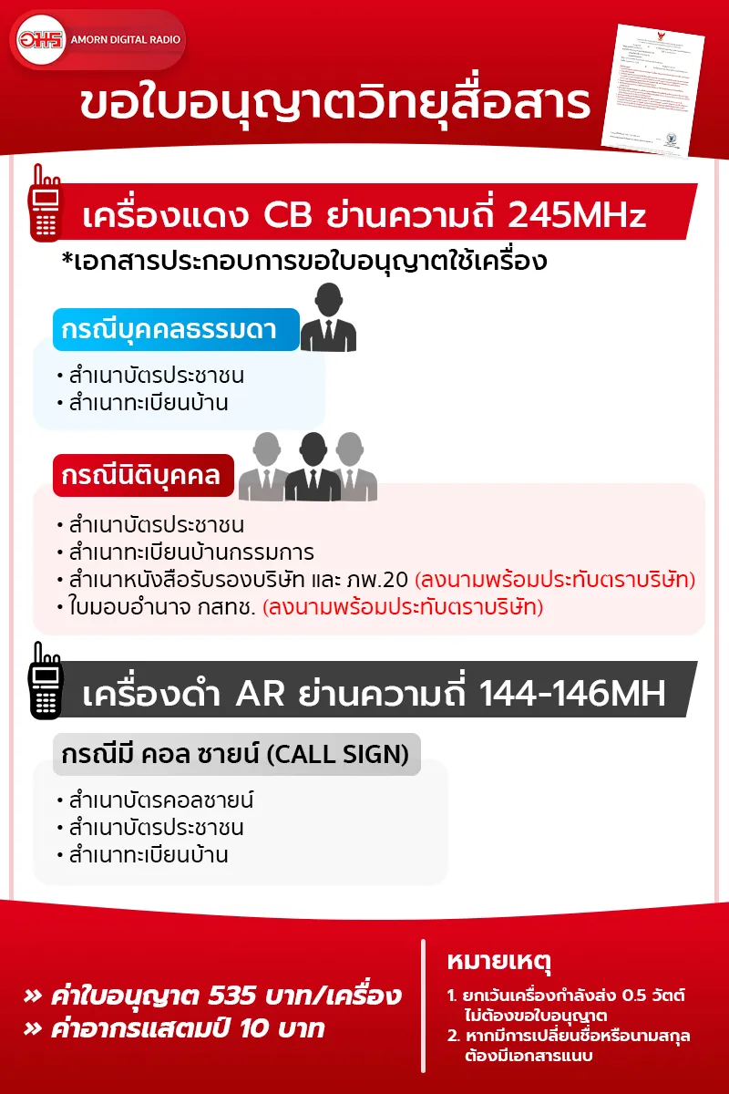 หมายเหตุ: ผู้ครอบครองต้องเป็นนักวิทยุสมัครเล่นและต้องสอบใบสัญญาเรียกขานเบื้องต้น
