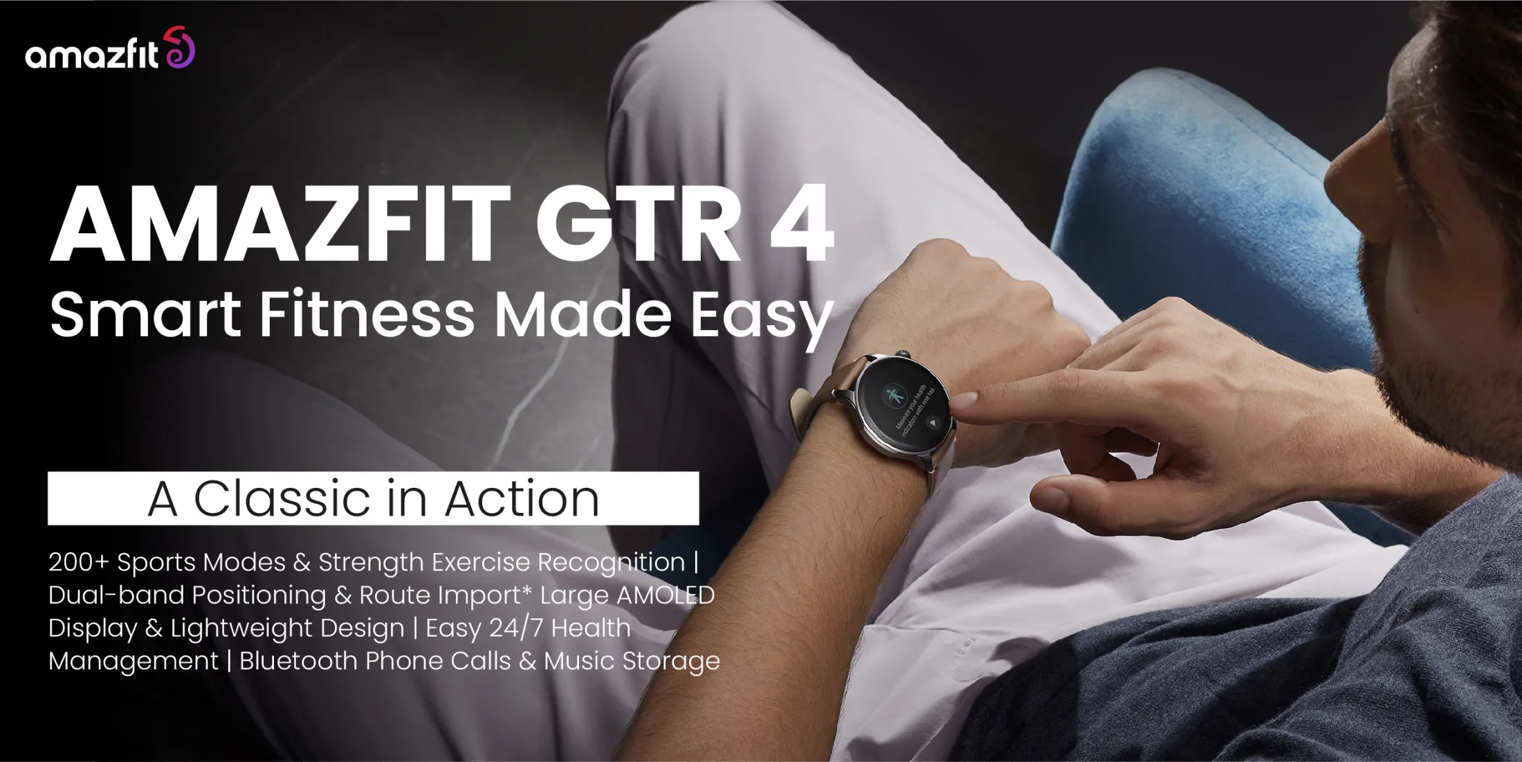 Amazfit GTR 4 Smart Watch วัดอัตราการเต้นของหัวใจ วัดค่า SpO2 วัดค่าความเครียด กันน้ำได้ 50 เมตร