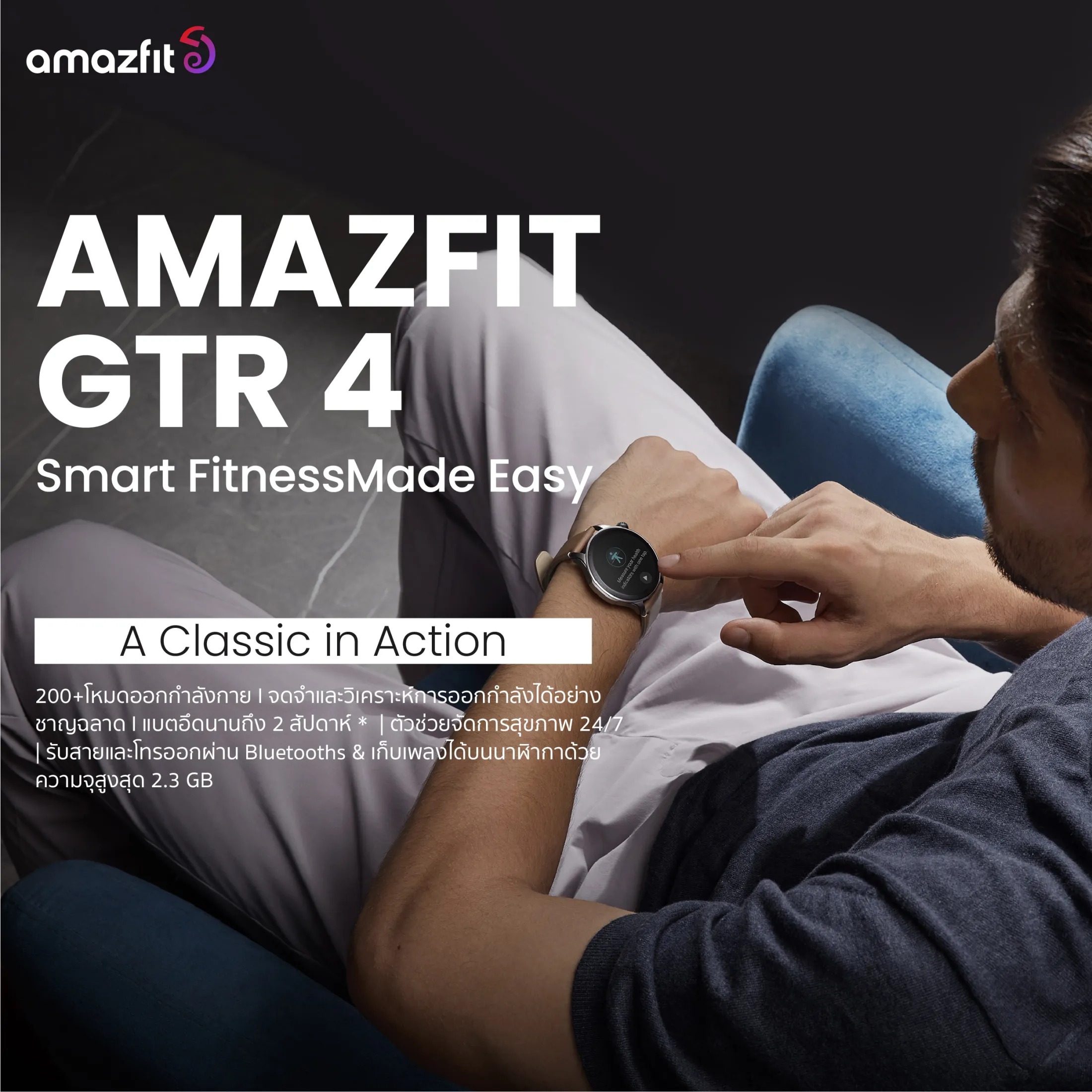 F2481 Amazfit GTR 4 Smart Watch วัดอัตราการเต้นของหัวใจ วัดค่า SpO2 วัดค่าความเครียด กันน้ำได้ 50 เมตร ผ่อน 0% ประกันร้าน 1 ปี (สมาร์ทวอทช์)