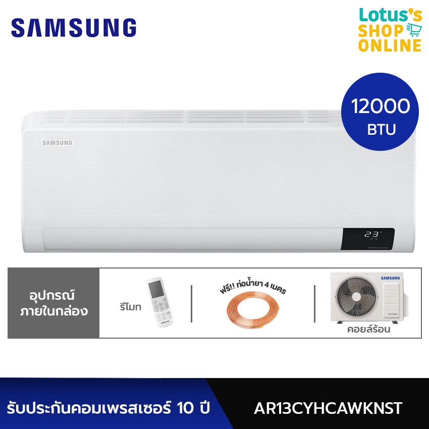 SAMSUNG ซัมซุง เครื่องปรับอากาศ ขนาด 12000 Btu รุ่น AR13CYHCAWKNST (ไม่รวมค่าติดตั้ง)