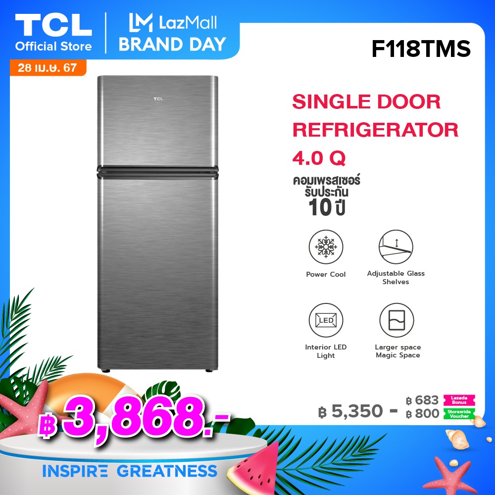 TCL ตู้เย็น 2 ประตู ขนาด 4 Q/113L สีเงินหรือเทา รุ่น F118TMS/TMG ระบบความเย็นแบบ Defrost