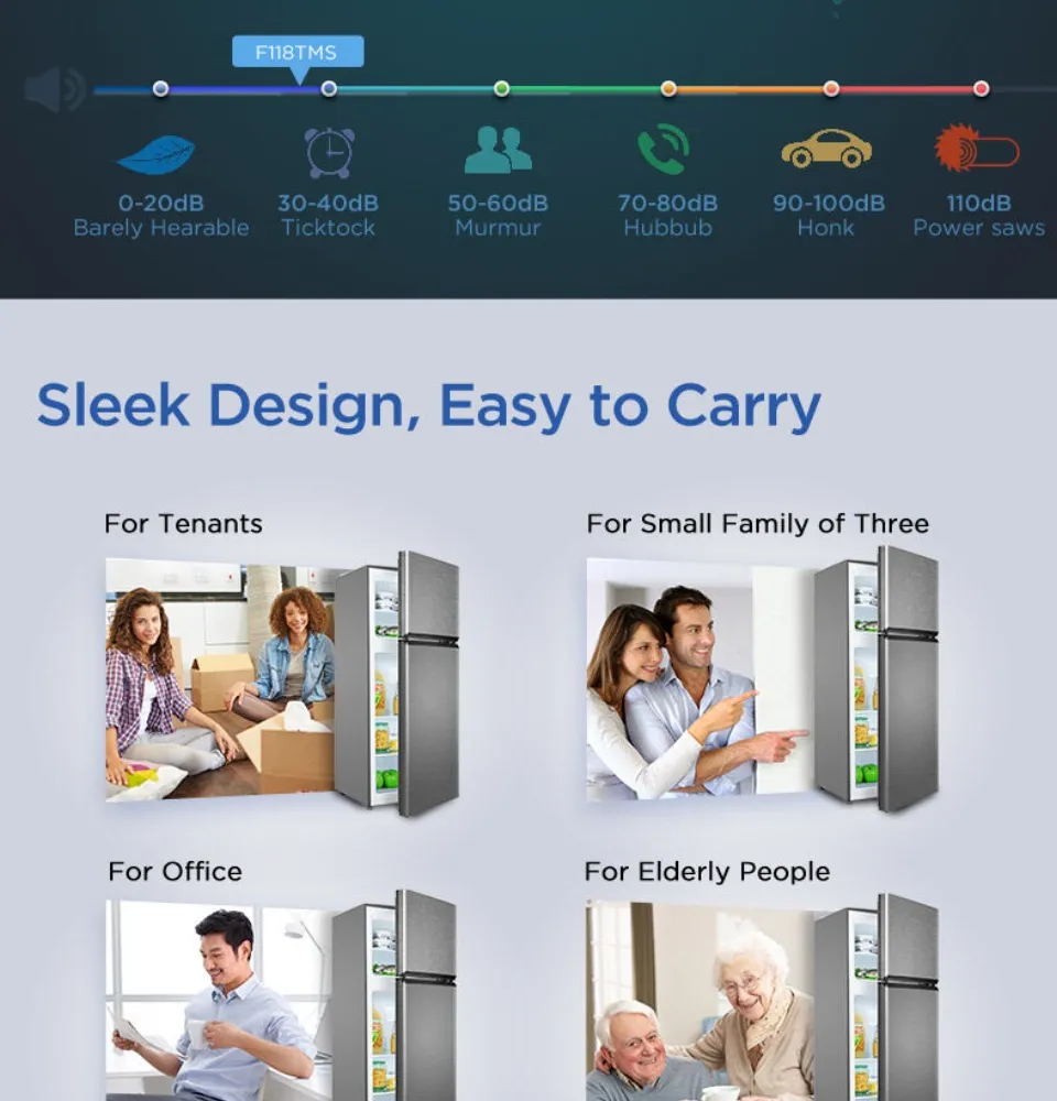 F2519 TCL ตู้เย็น 2 ประตู ขนาด 4 Q/113L สีเงินหรือเทา รุ่น F118TMS/TMG ระบบความเย็นแบบ Defrost