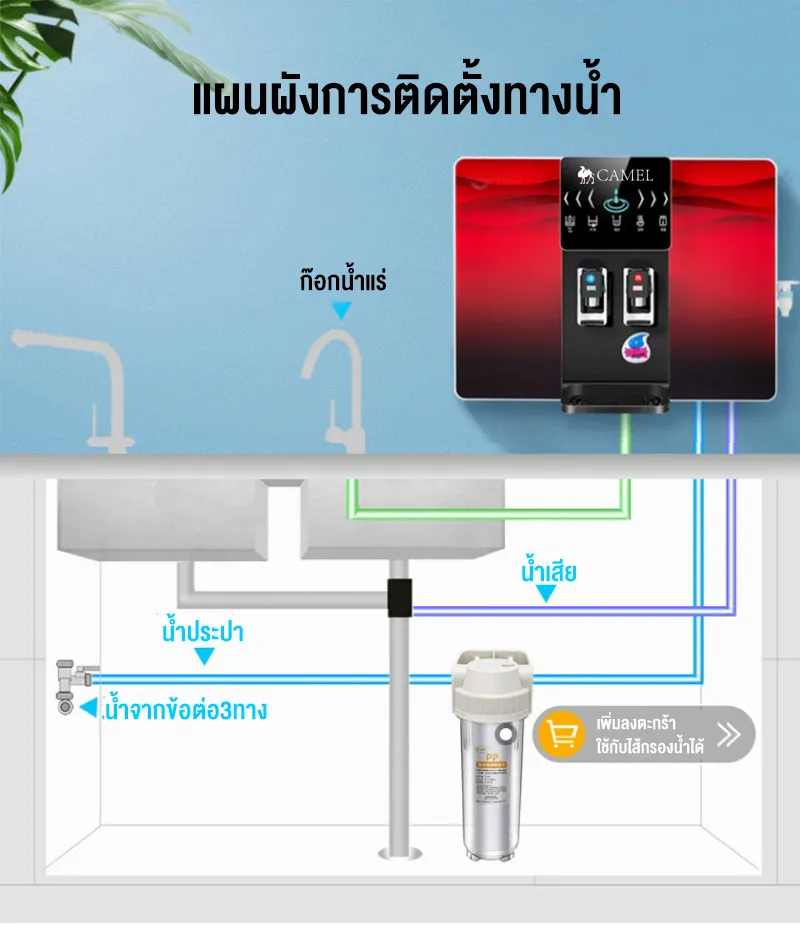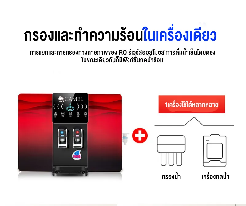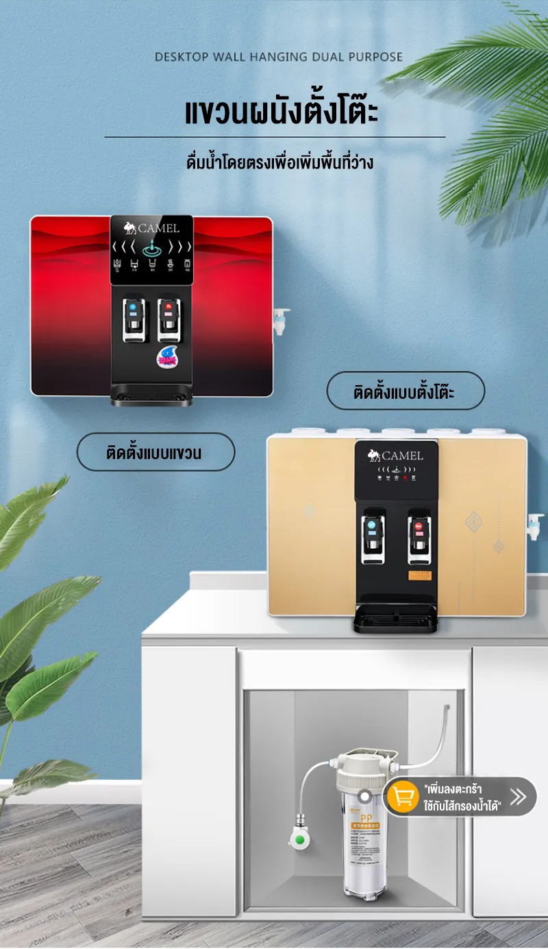 F2527 CAMEL เครื่องกรองน้ำRO 5ชั้น เครื่องกรองน้ำประปา เครื่องกรองน้ำในครัว ทำน้ำร้อนได้ เครื่องกรองน้ำตั้งโต๊ะ ดื่มได้โดยตรง ตู้กดน้ำ