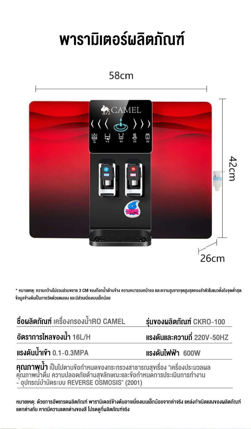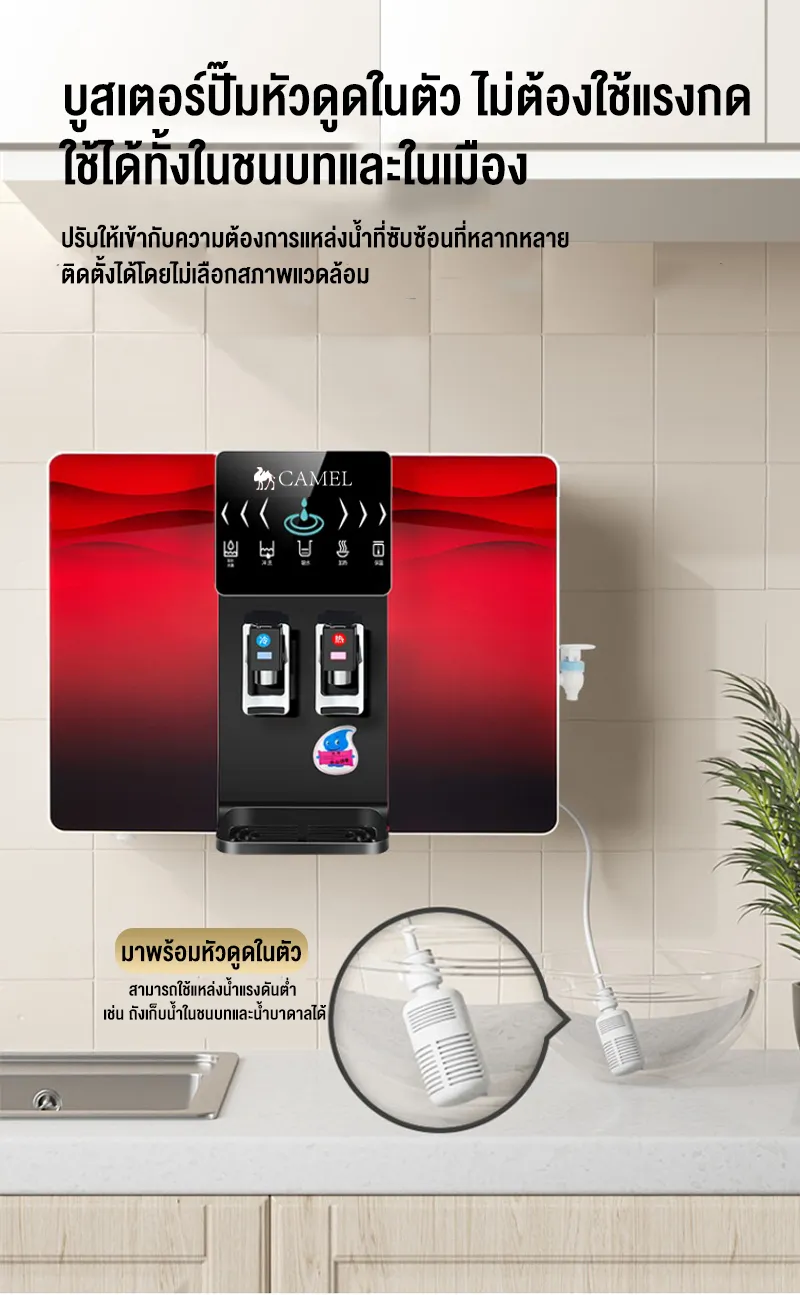 CAMEL เครื่องกรองน้ำRO 5ชั้น เครื่องกรองน้ำประปา เครื่องกรองน้ำในครัว ทำน้ำร้อนได้ เครื่องกรองน้ำตั้งโต๊ะ ดื่มได้โดยตรง ตู้กดน้ำ