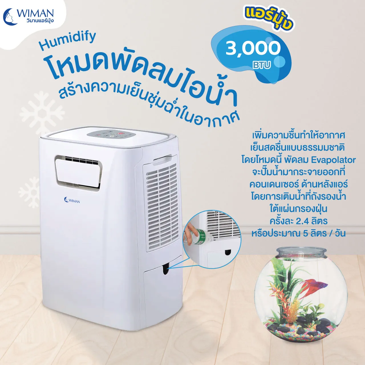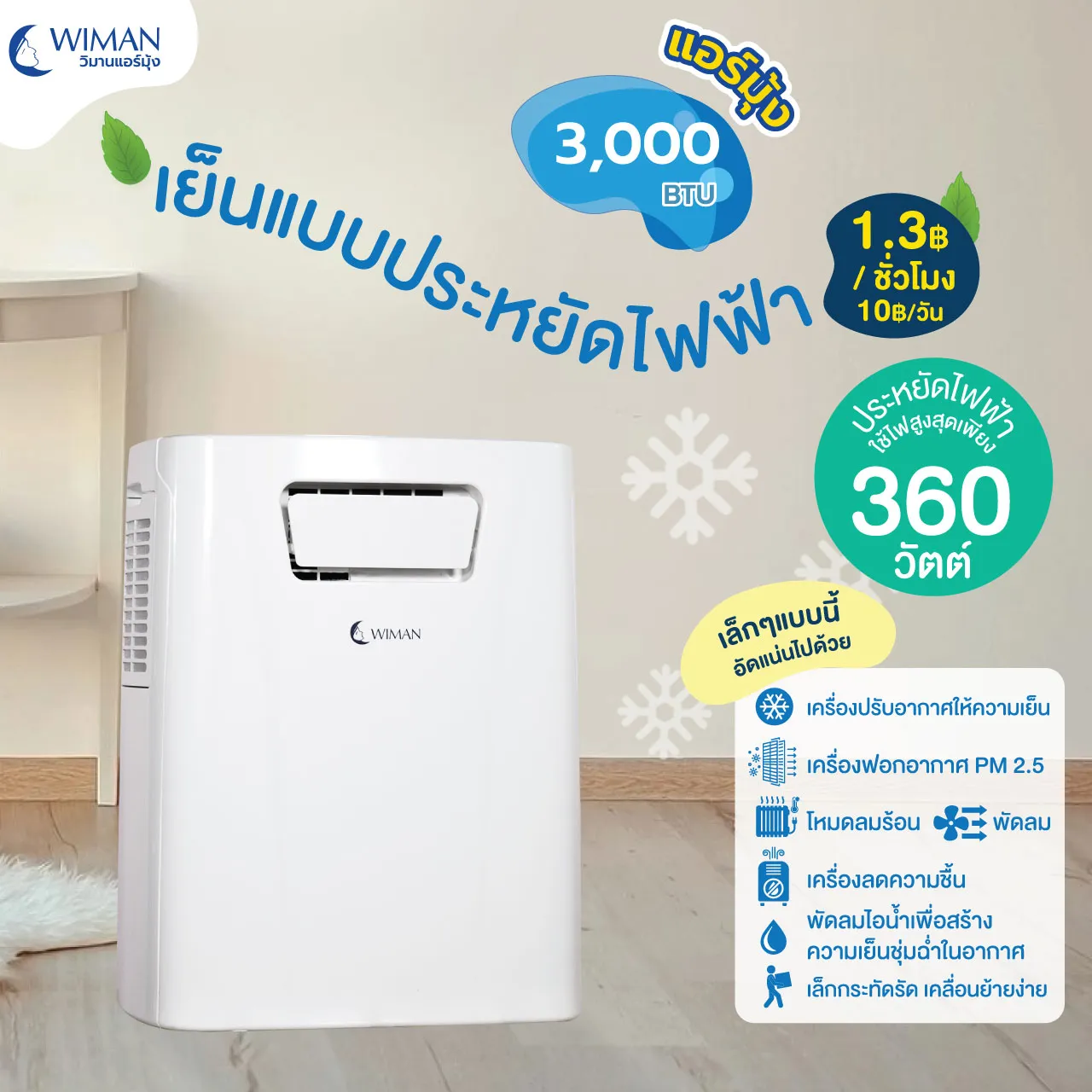 แอร์เคลื่อนที่ 3000 บีทียู วิมานแอร์มุ้ง มี 6 โหมด เย็นฉ่ำ ไม่มีน้ำทิ้ง ไม่ต้องล้างแอร์ กินไฟน้อย 360 วัตต์