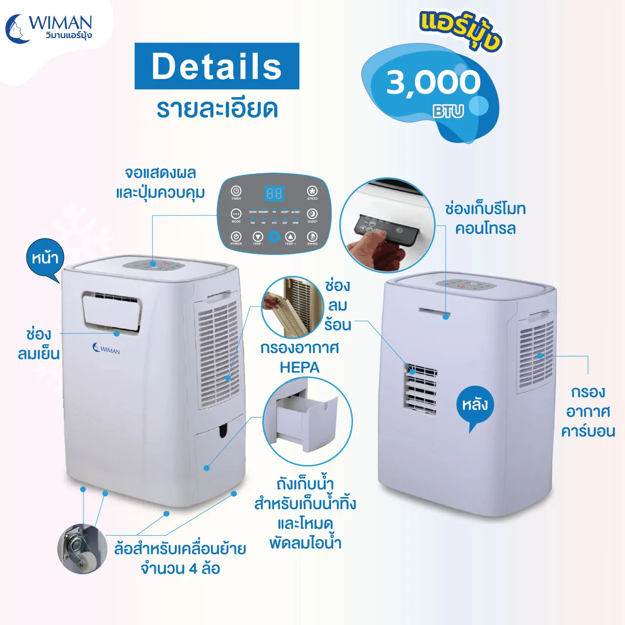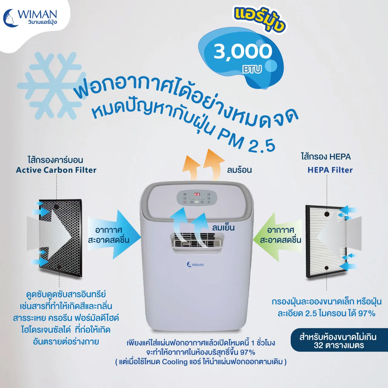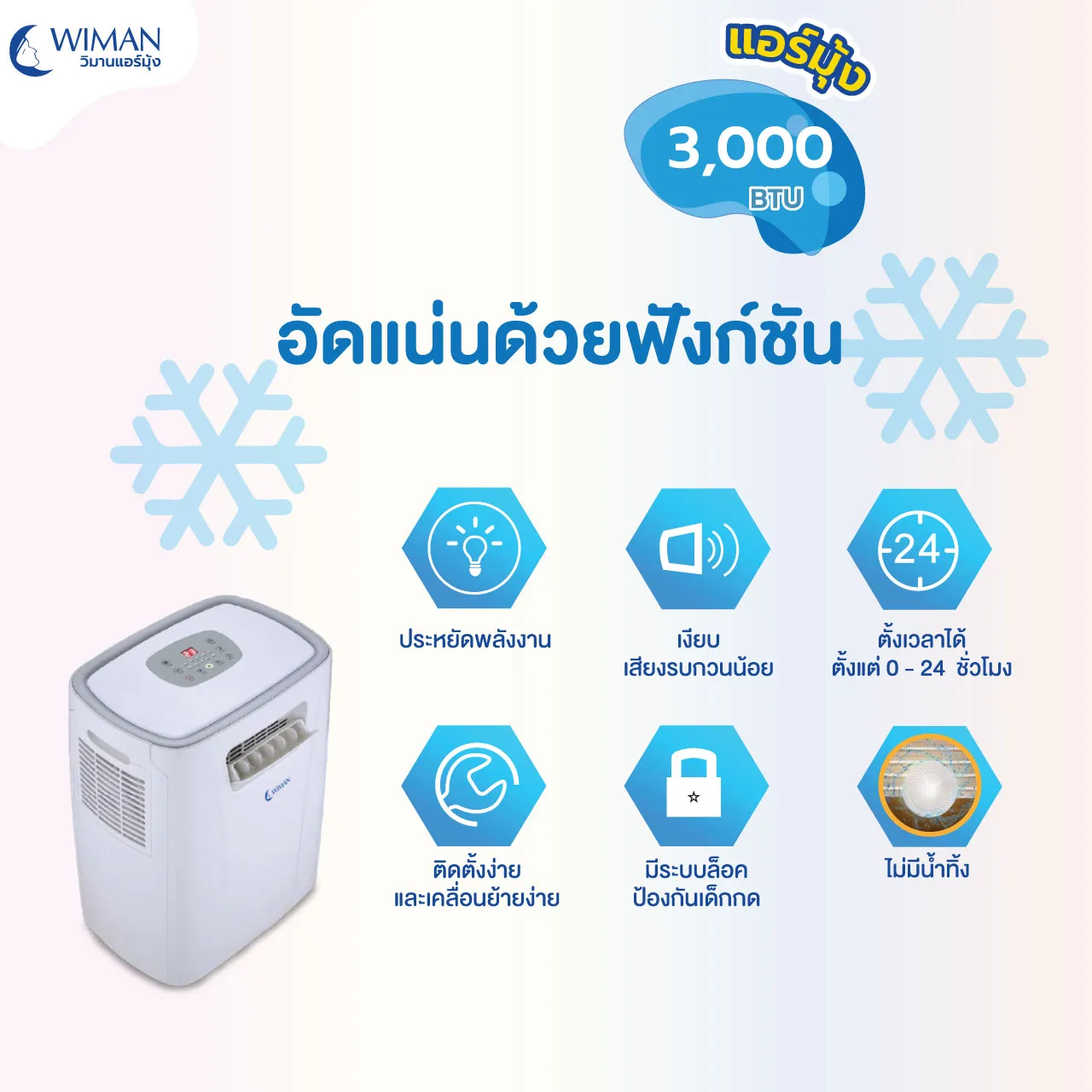 - New รุ่นใหม่ล่าสุดแอร์เคลื่อนที่วิมานแอร์มุ้ง 3000 บีทียู มาพร้อมกับ