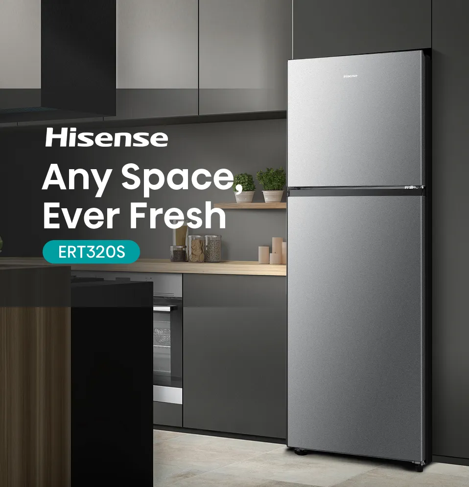 F2534 Hisense ตู้เย็น 2 ประตู สีเงิน 326 ลิตร: 11.5 Q รุ่น ERT320S