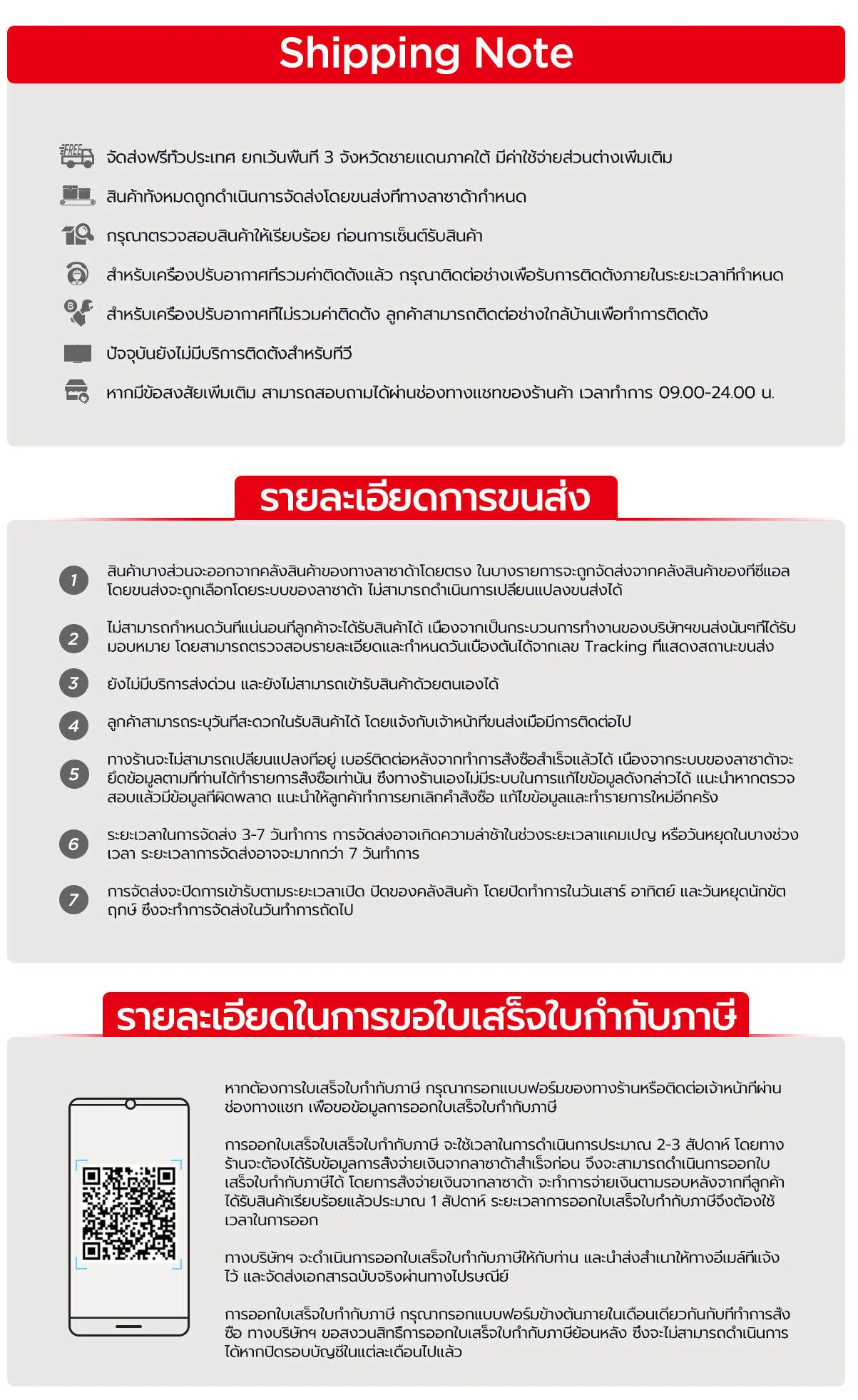 - หมายเหตุ : โปรดรักษาสิทธิ์ของท่านในการรับสินค้า เนื่องจากสินค้าในกลุ่มเครื่องใช้ไฟฟ้ามีราคาสูง หากท่านไม่ได้ถ่ายคลิปขณะแกะสินค้าเพื่อยืนยันความเสียหาย ถือว่าท่านได้ยอมรับสินค้านั้นแล้ว โดยที่ท่านจะไม่สามารถแจ้งคืนสินค้า, แจ้งเคลม หรือเรียกร้องความเสียหายใดๆได้