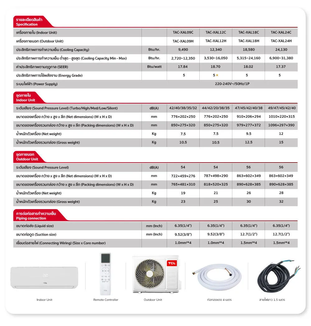 F2535 TCL แอร์ ขนาด 24,130 BTU รวมค่าติดตั้ง เครื่องปรับอากาศติดผนังระบบ Inverter รุ่น TAC-XAL24CH [ผ่อน 0% นาน 10 เดือน]