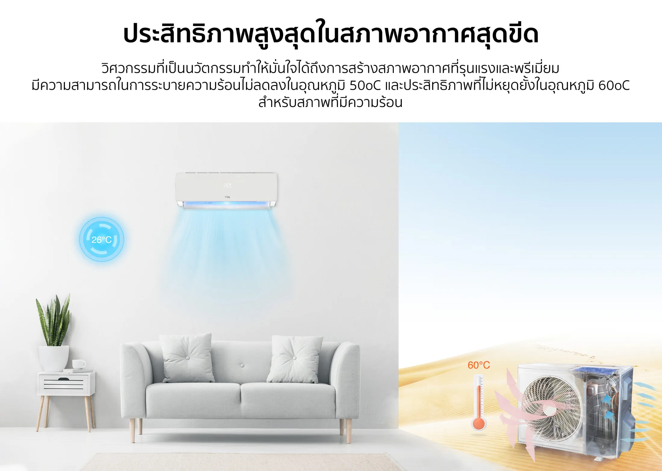 - สามารถทำงานได้มีประสิทธิภาพ แม้อุณหภูมิภายนอกสูงถึง 60 องศา