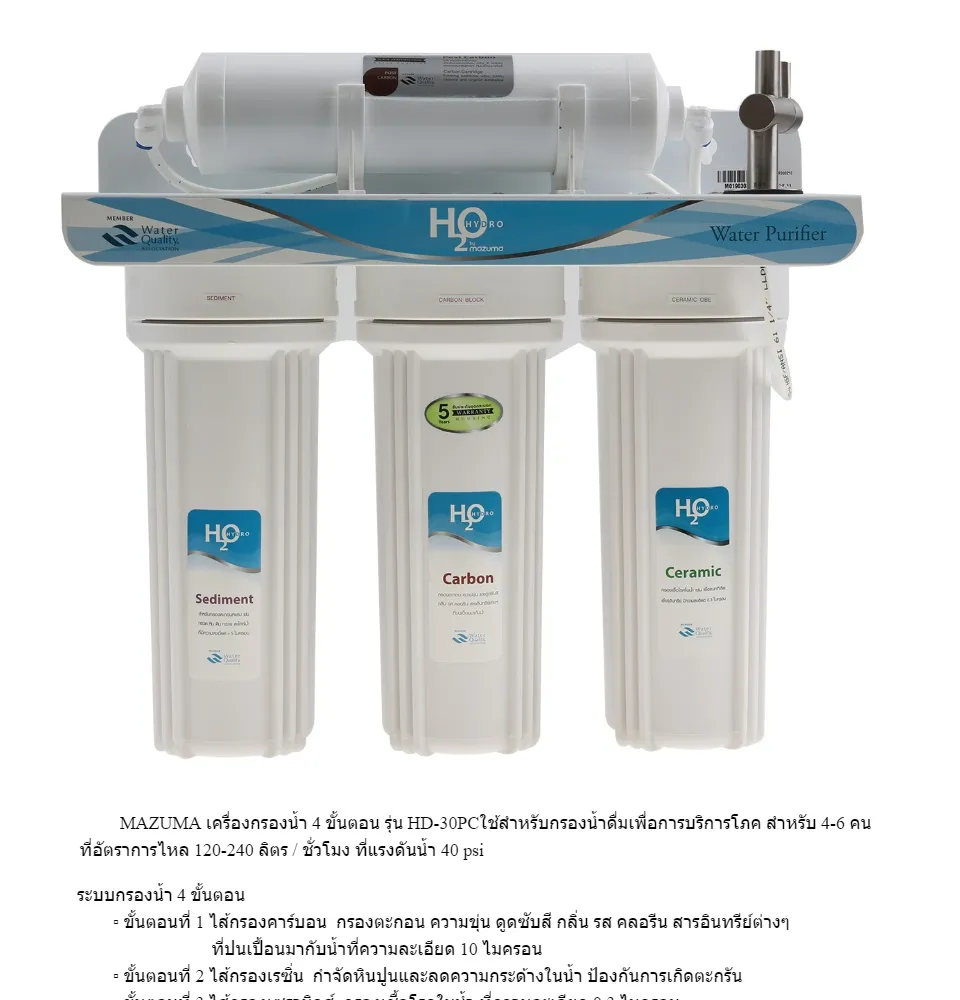 MAZUMA เครื่องกรองน้ำ 4 ขั้นตอน รุ่น HD-30PC |MC|