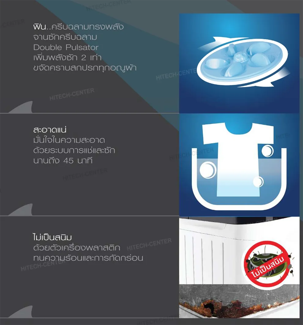 - เพิ่มพลังการปั่นหมาด สามารถขจัดน้ำออกจากผ้าได้อย่างรวดเร็ว