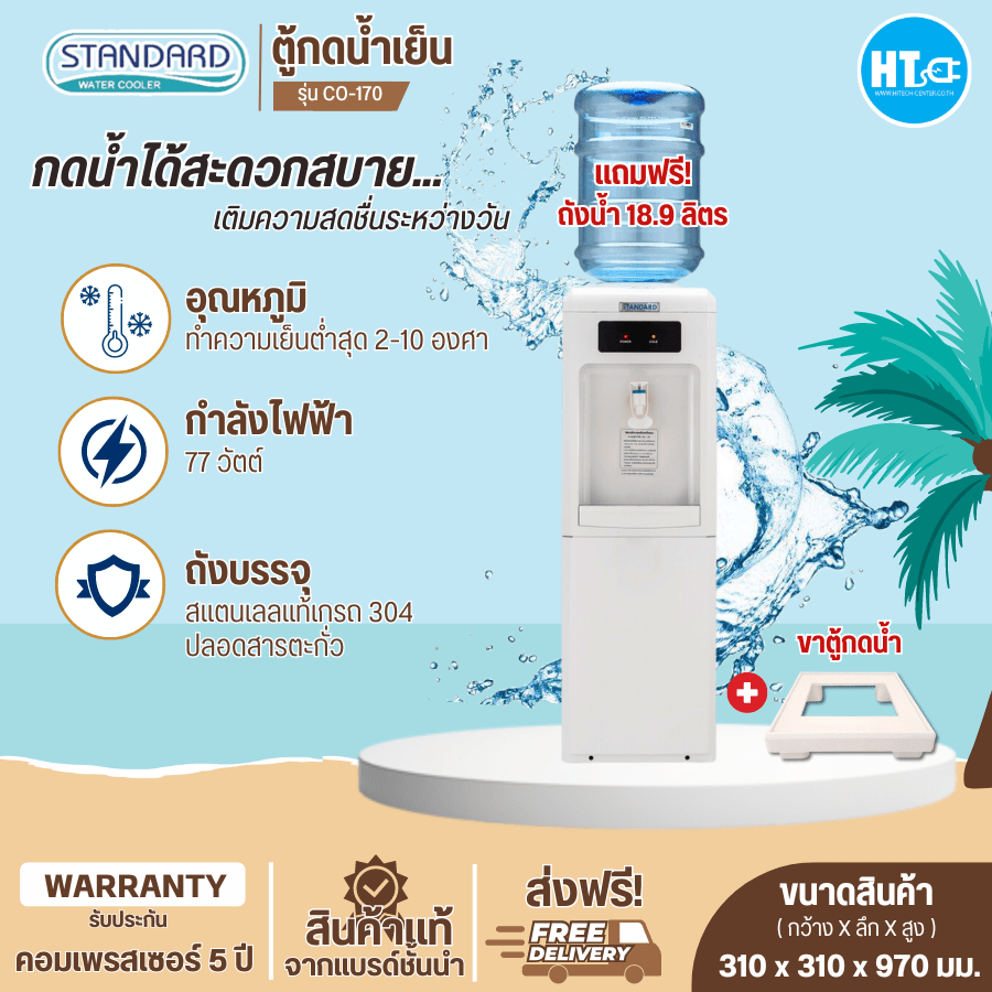 F2591 ส่งฟรีทั่วไทย STANDARD เครื่องทำน้ำเย็น ตู้กดน้ำดื่มเย็น สแตนดาร์ด รุ่นใหม่ TSCO-170(แถมฟรีถังน้ำและขาตู้กดน้ำ) ราคาถูก รับประกัน 5 ปี เก็บเงินปลายทาง