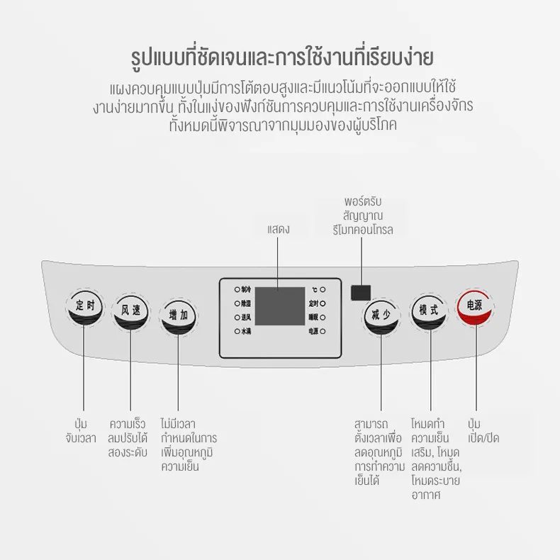 – ปรับเป็นโหมดของพัดลมได้ กรณีไม่ต้องการให้คอมเพรสเซอร์ทำงาน