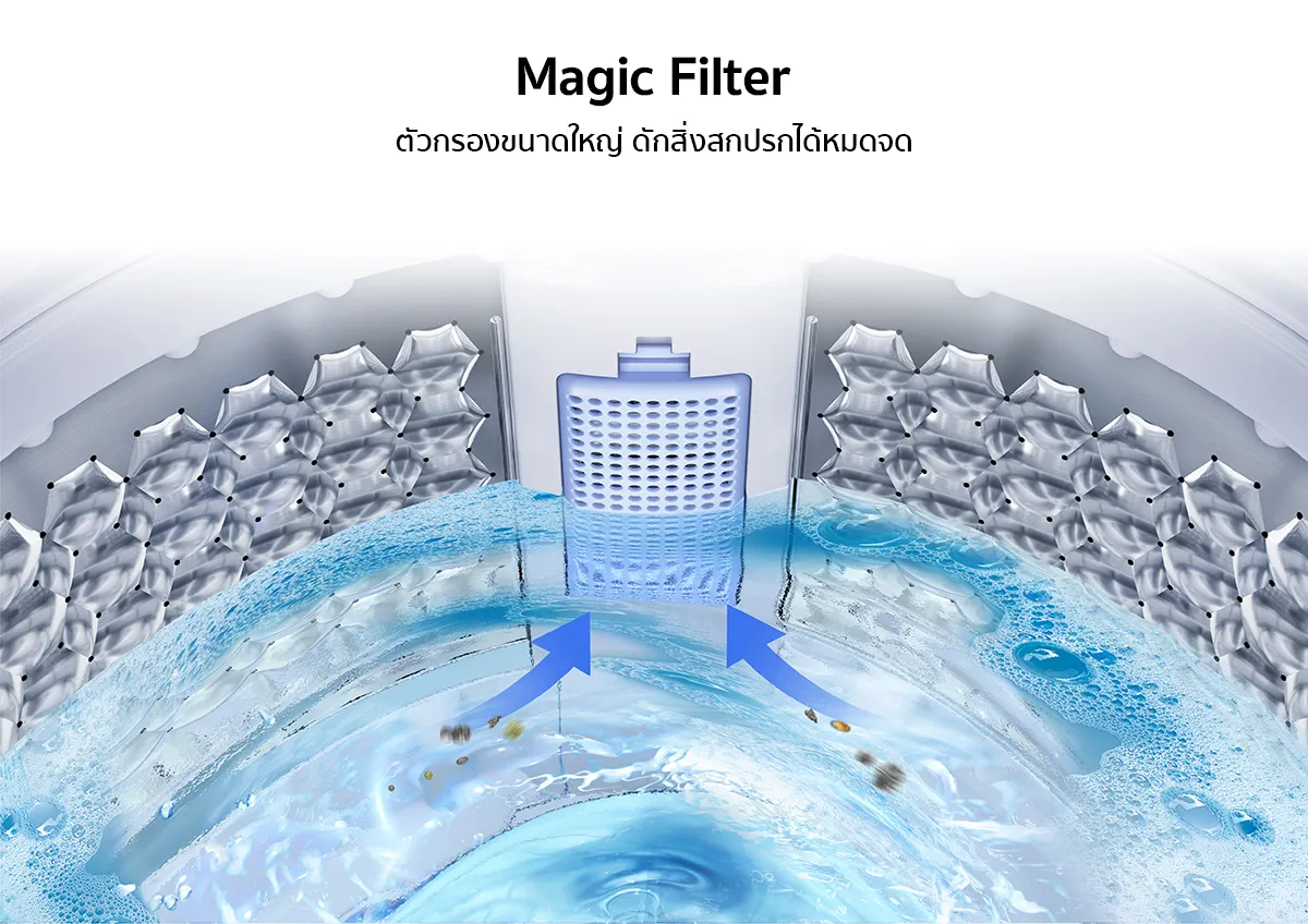 - Magic filter แผ่นกรองเศษผ้าป้องกันการอุดตัน