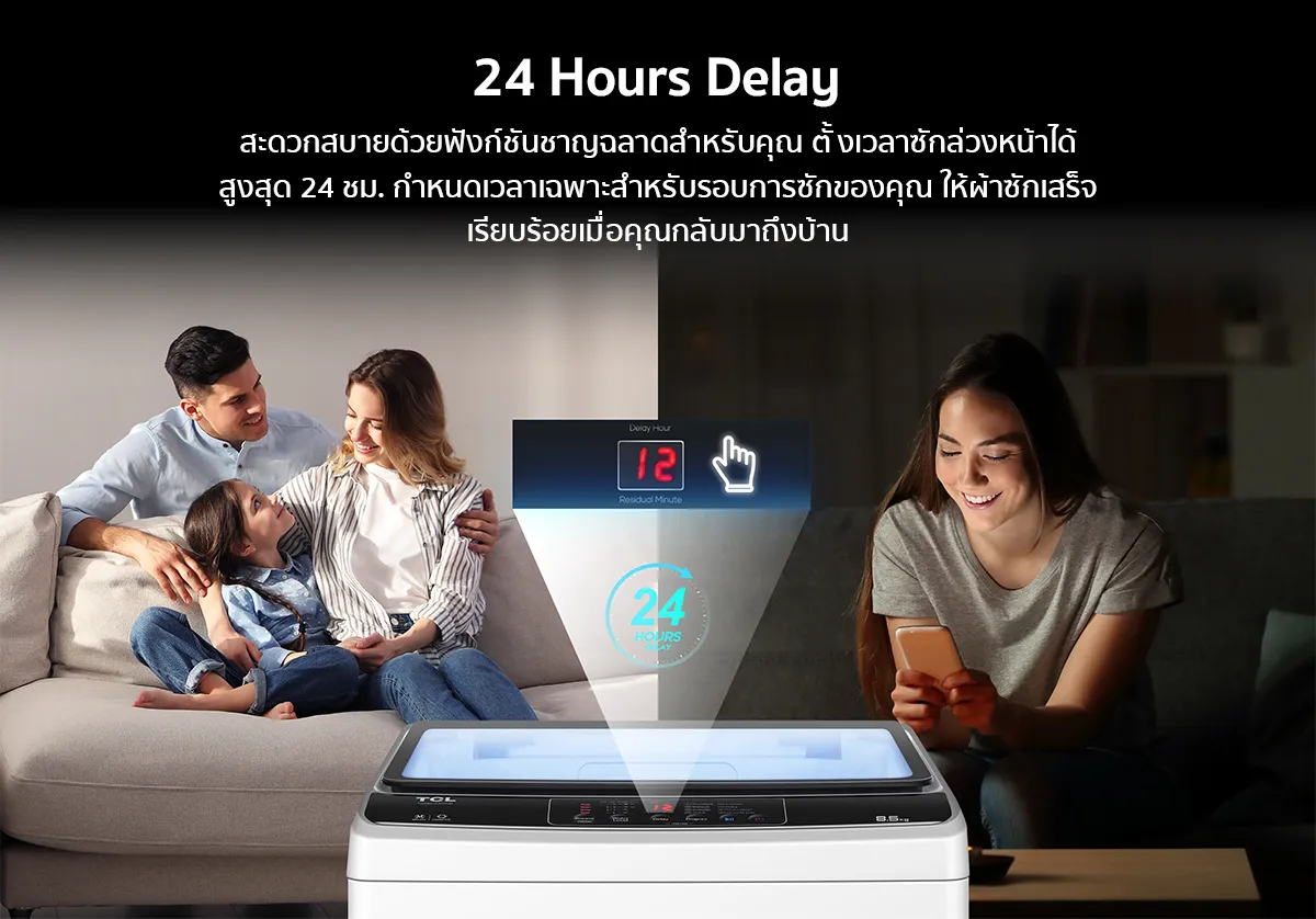 - 24 Hour delay ตั้งเวลาซักล่วงหน้าได้ถึง 24 ชั่วโมง