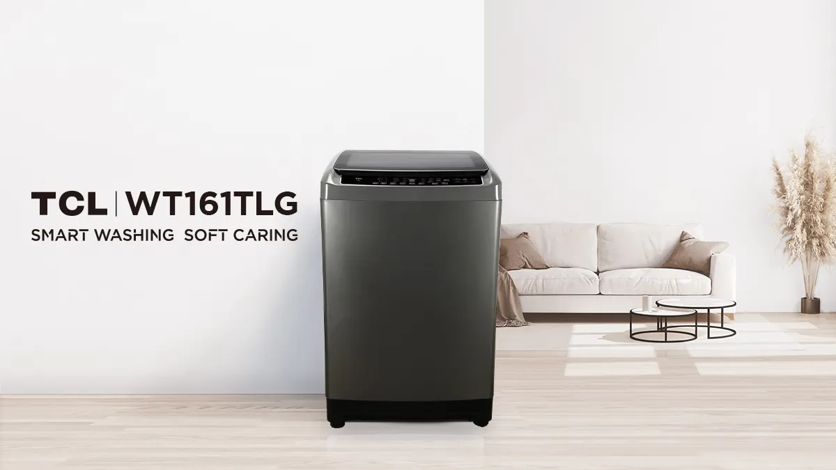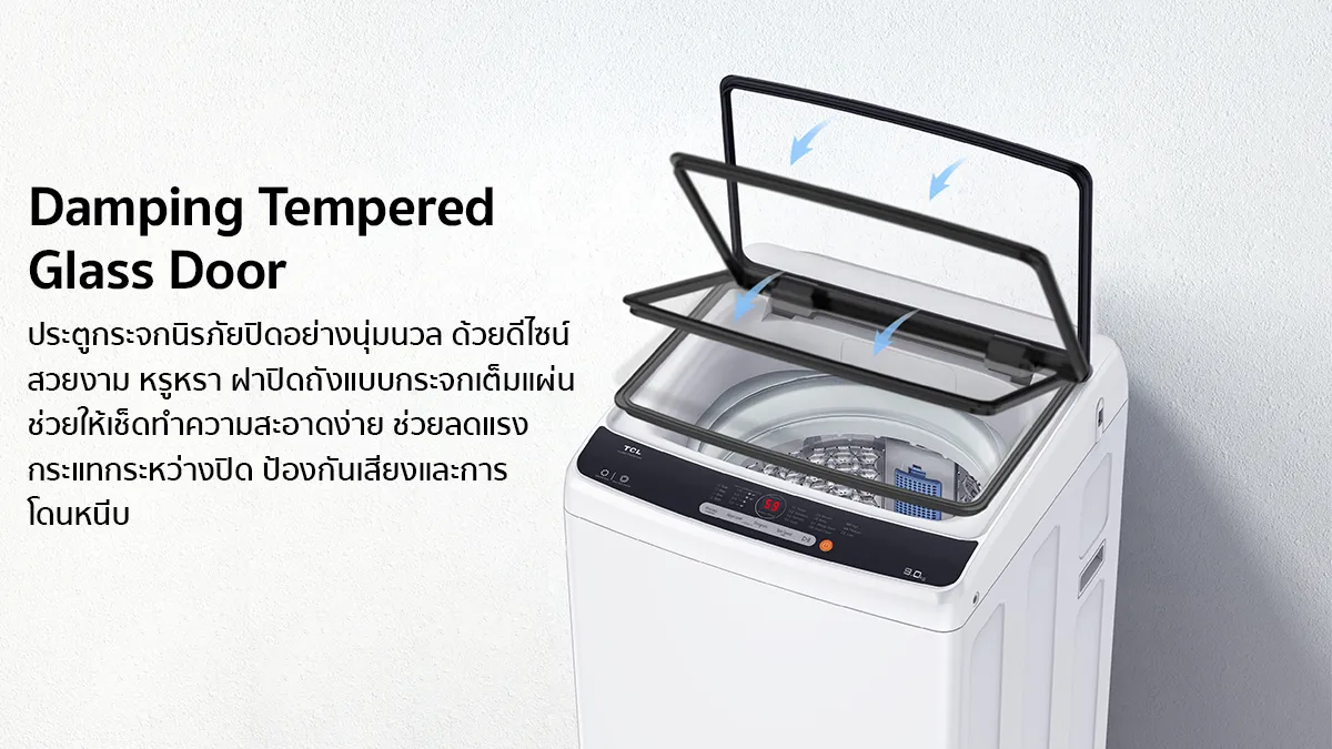 NEW TCL เครื่องซักผ้าฝาบน ขนาด 16 Kg. สีเทา รุ่น WT161TLG ฝาครอบกระจกนิรภัย ปรับสมดุลถังอัตโนมัติ