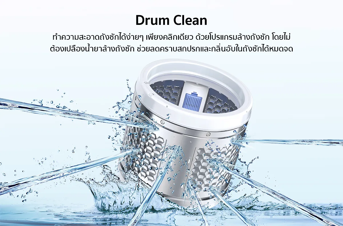 - Drum Clean ช่วยล้างถังซักให้สะอาด ไม่ต้องพึ่งน้ำยาล้างถังซัก