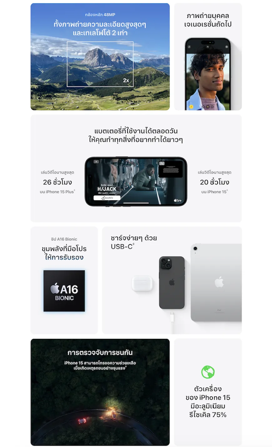 - āļāļēāļĢāđāļāļ·āđāļāļĄāļāđāļ USB-C â āļāđāļāļāļāđāļ USB-C āđāļŦāđāļāļļāļāļāļēāļĢāđāļ Mac āļŦāļĢāļ·āļ iPad āļāđāļ§āļĒāļŠāļēāļĒāļāļēāļĢāđāļāđāļŠāđāļāđāļāļĩāļĒāļ§āļāļąāļāļāļĩāđāļāļļāļāđāļāđāļāļēāļĢāđāļ iPhone 15 āđāļāļĄāļĒāļąāļāđāļāđ iPhone 15 āđāļāļ·āđāļāļāļēāļĢāđāļ Apple Watch āļŦāļĢāļ·āļ AirPods āđāļāđāļāđāļ§āļĒ