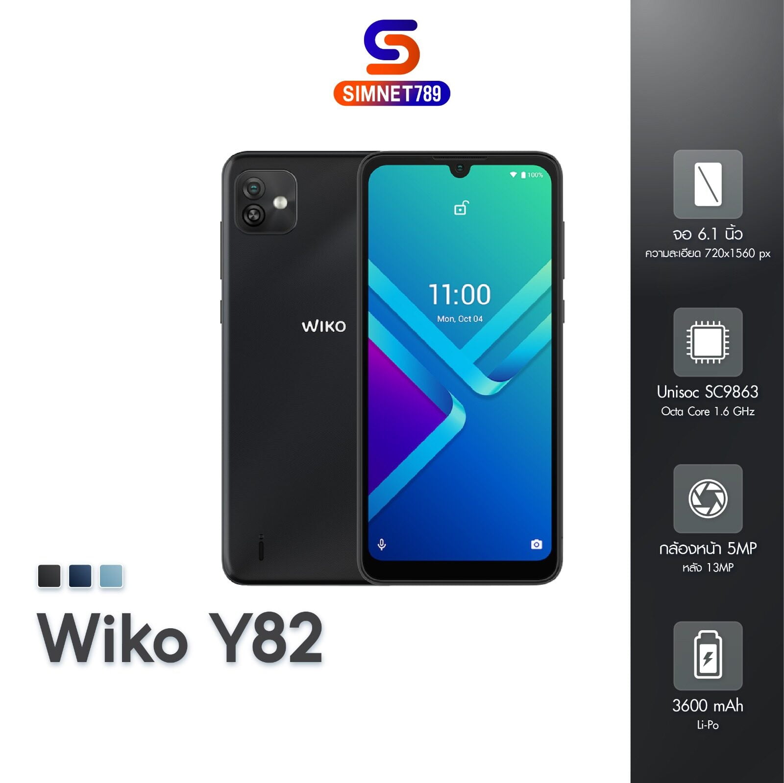 F294 [ รับประกันศูนย์ ] Wiko Y82 3/32GB มือถือ จอใหญ่ 6.1 ชิป Unisoc เเบต 3600 Alot wikoy82