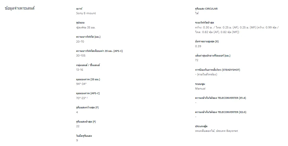 F363 SONY E-mount G Lens SEL2070G (FE 20-70 มม. F4) : Lens Full Frame