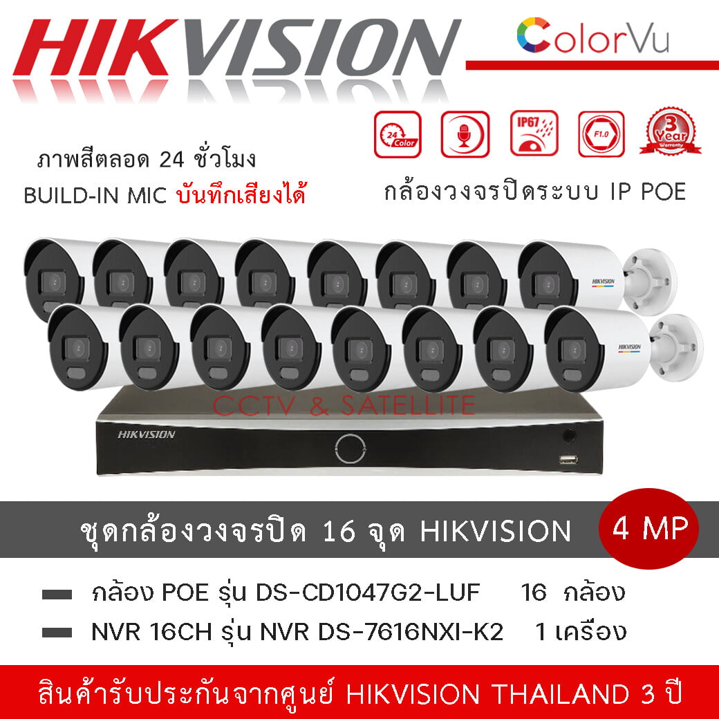 F377 (set 16 ตัว + 1 เครื่อง ) HIKVISION DS-2CD1047G2-LUF กล้องวงจรปิดระบบ IP ColorVu 4 MP ภาพเป็นสีตลอดเวลา, มีไมค์ในตัว + เครื่องบันทึกภาพ Hikvision NVR DS-7616NXI-K2